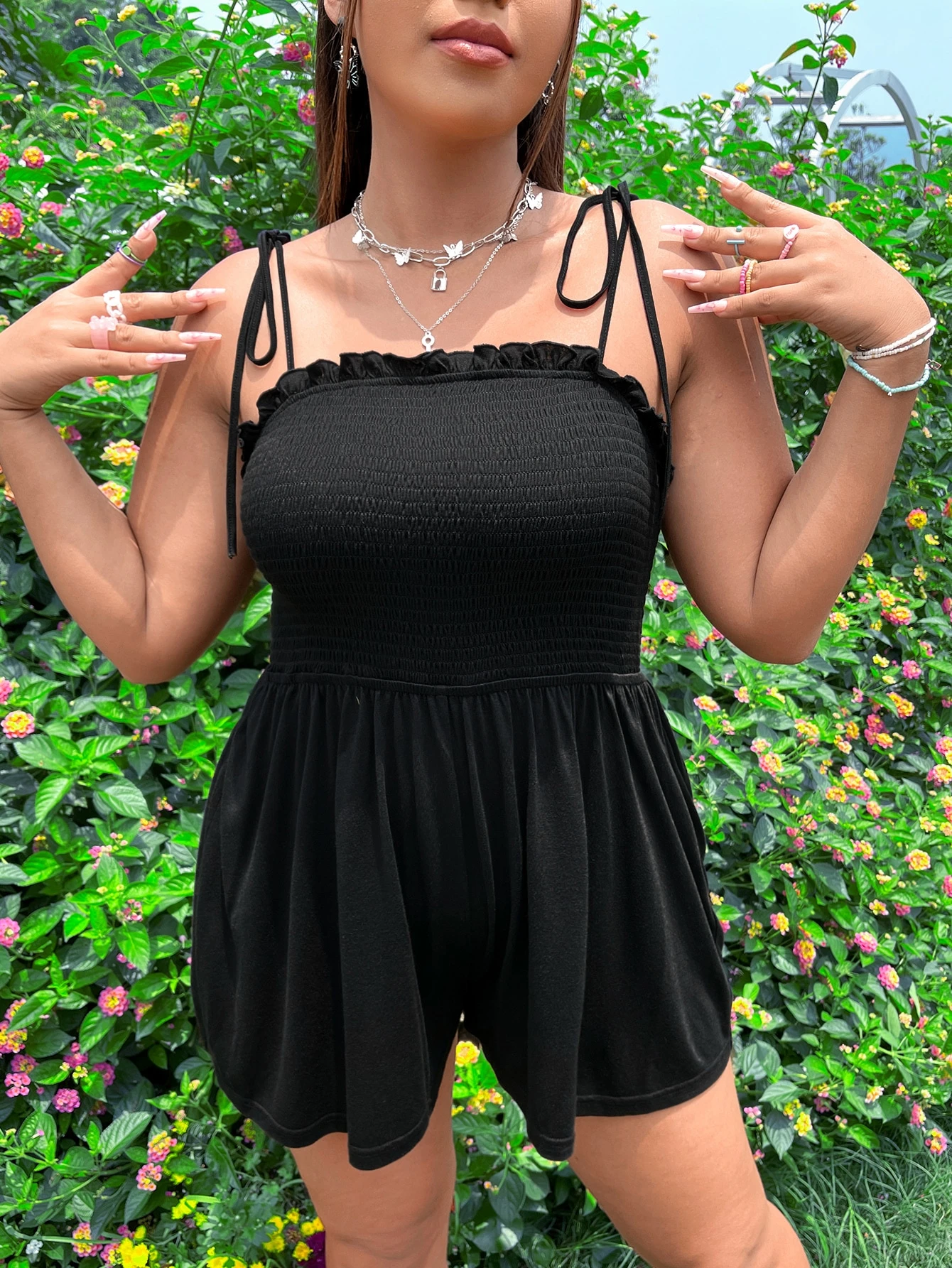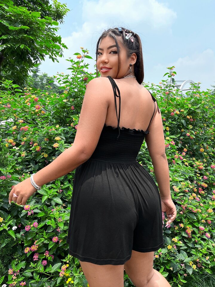 Combishort à fines brides froncé à plis à épaule nouée