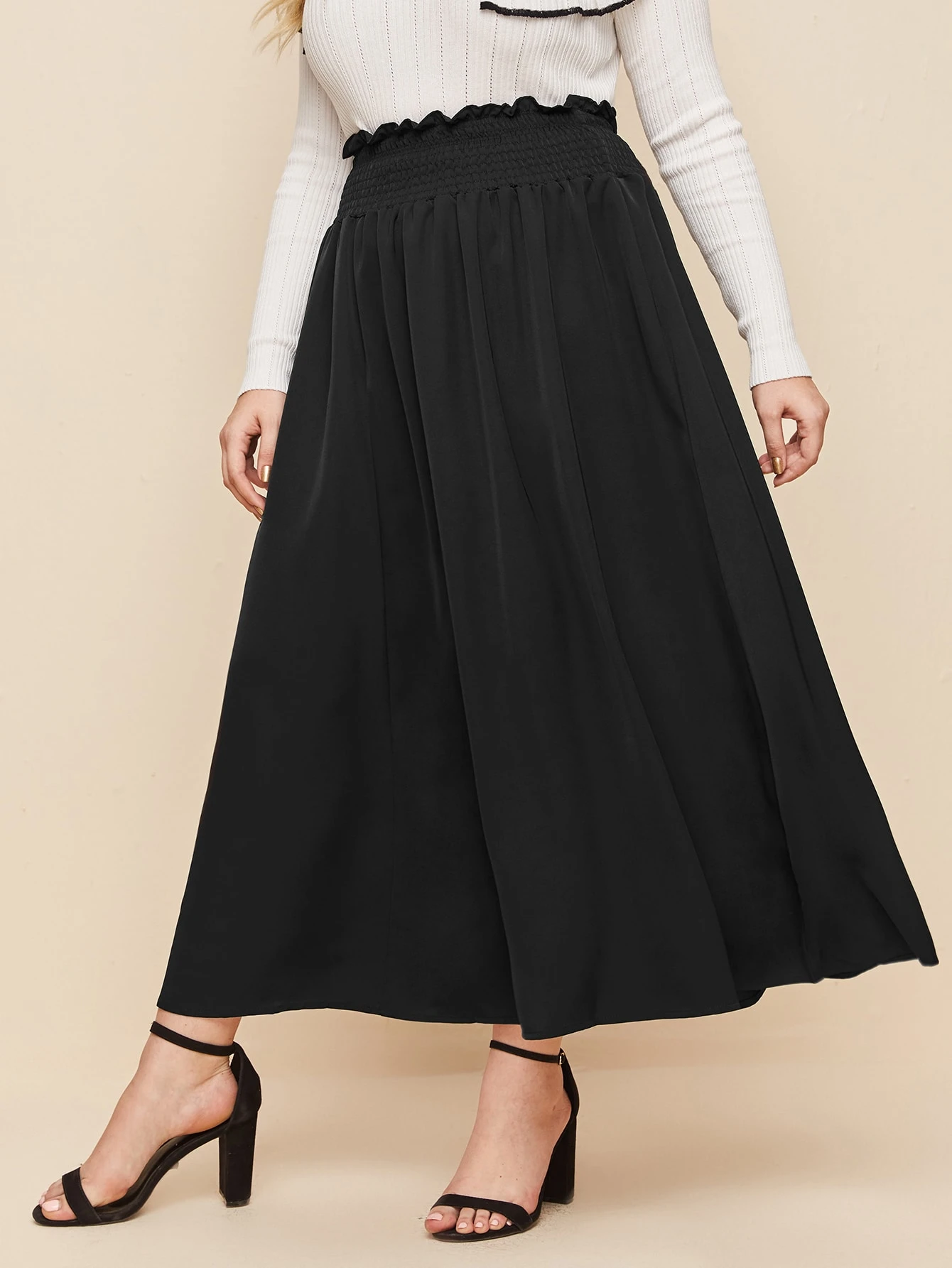 Jupe évasée à talon froncée