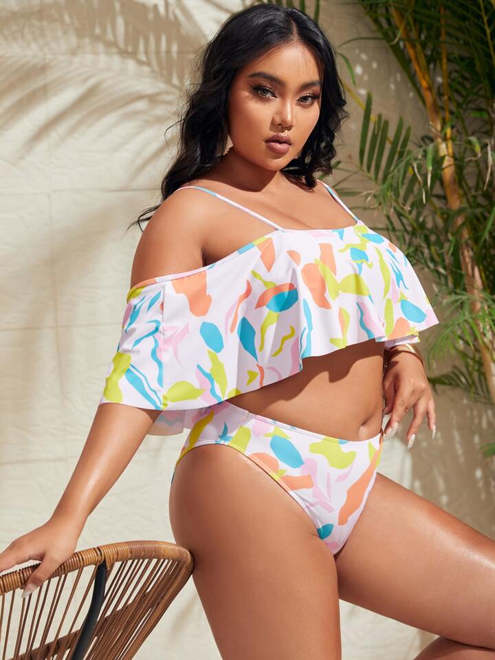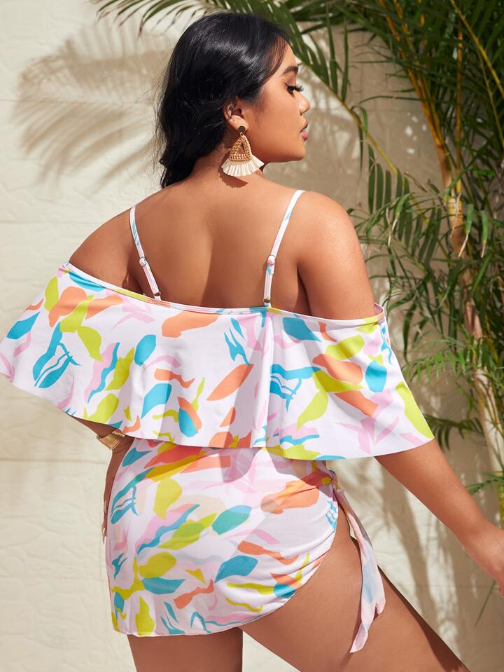 Ensemble bikini grande taille imprimé intégral taille haute avec jupe de plage pour l'été