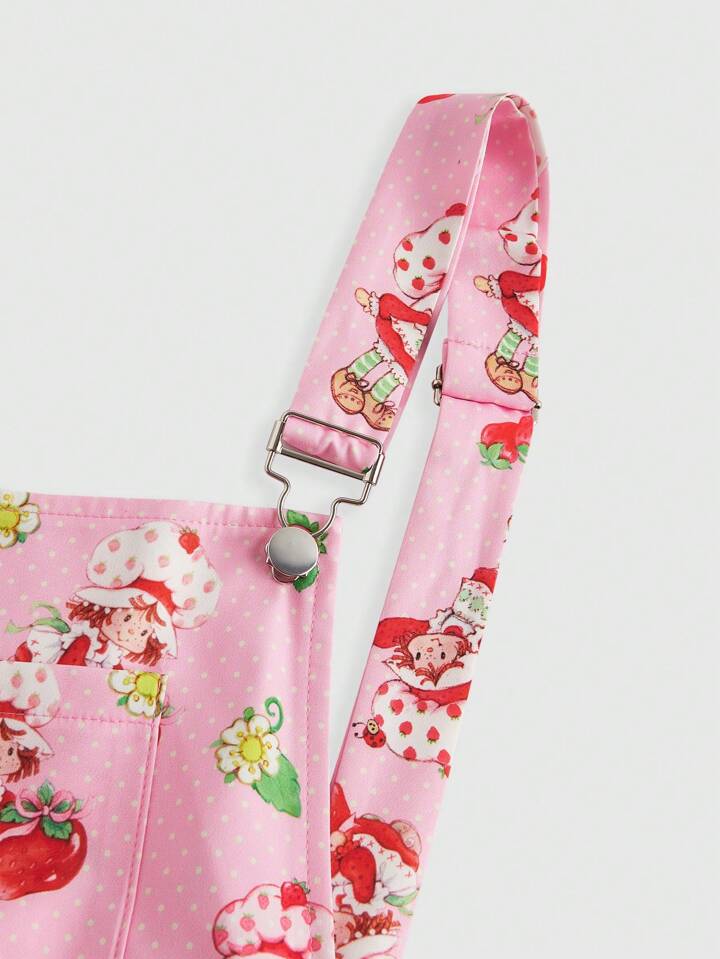 Robe de pinafore imprimée de bande dessinée et de fraise, style décontracté grande taille