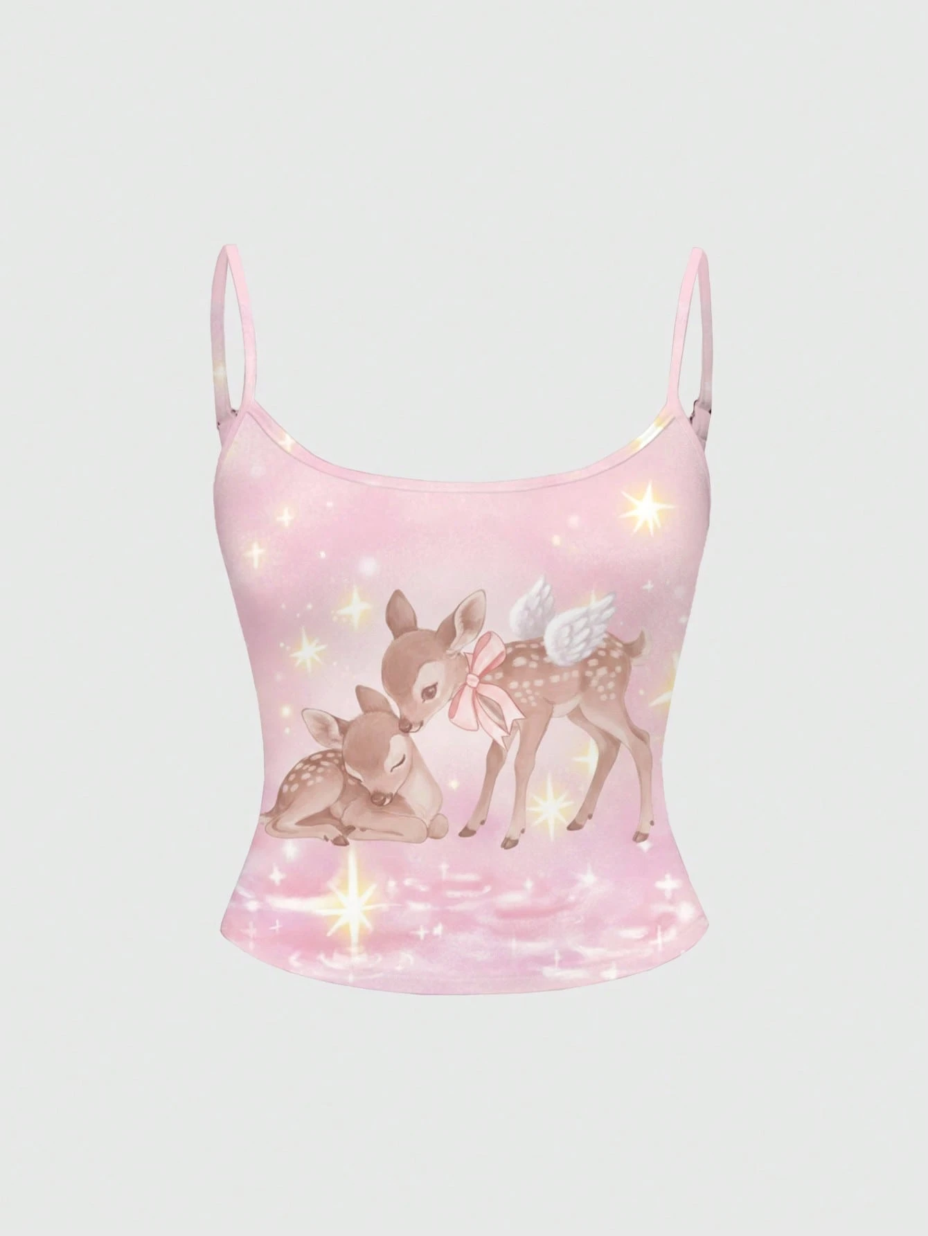 Kawaii Débardeur ajusté mignon de grande taille avec motif de cerf féerique et doux