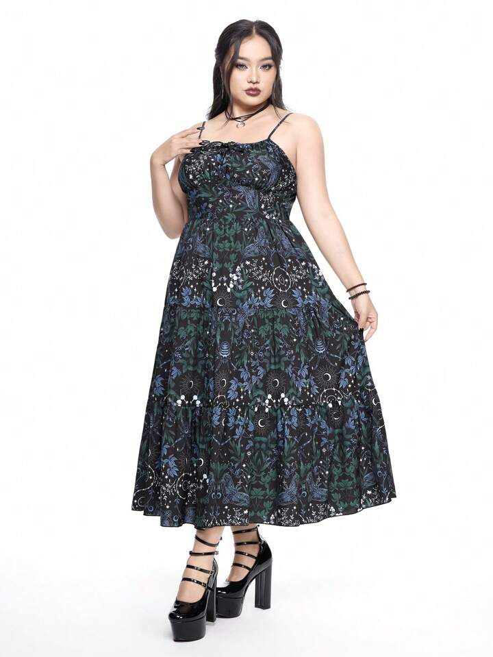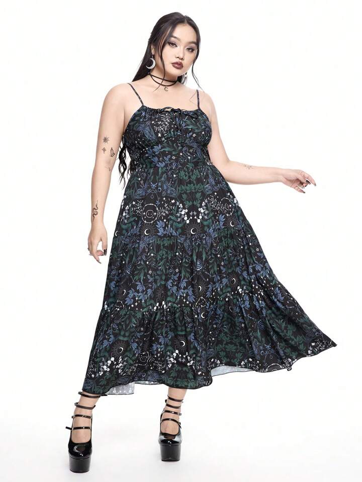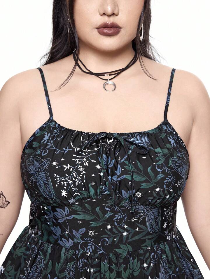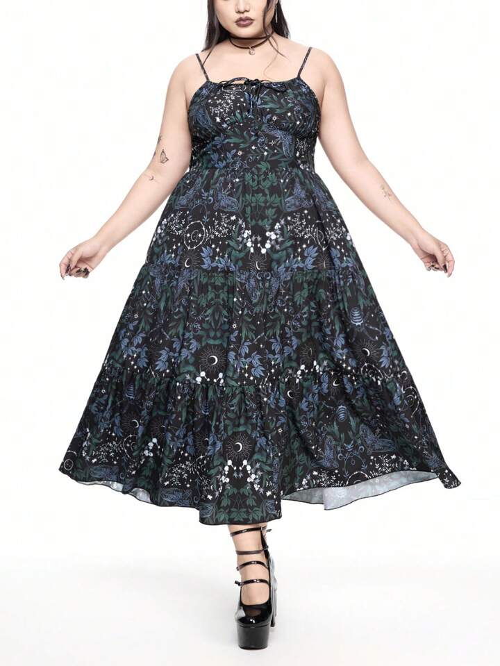 Robe gothique foncée de style floral et imprimé de papillon, coupe ajustée en forme de A, pour le printemps/été, grande taille