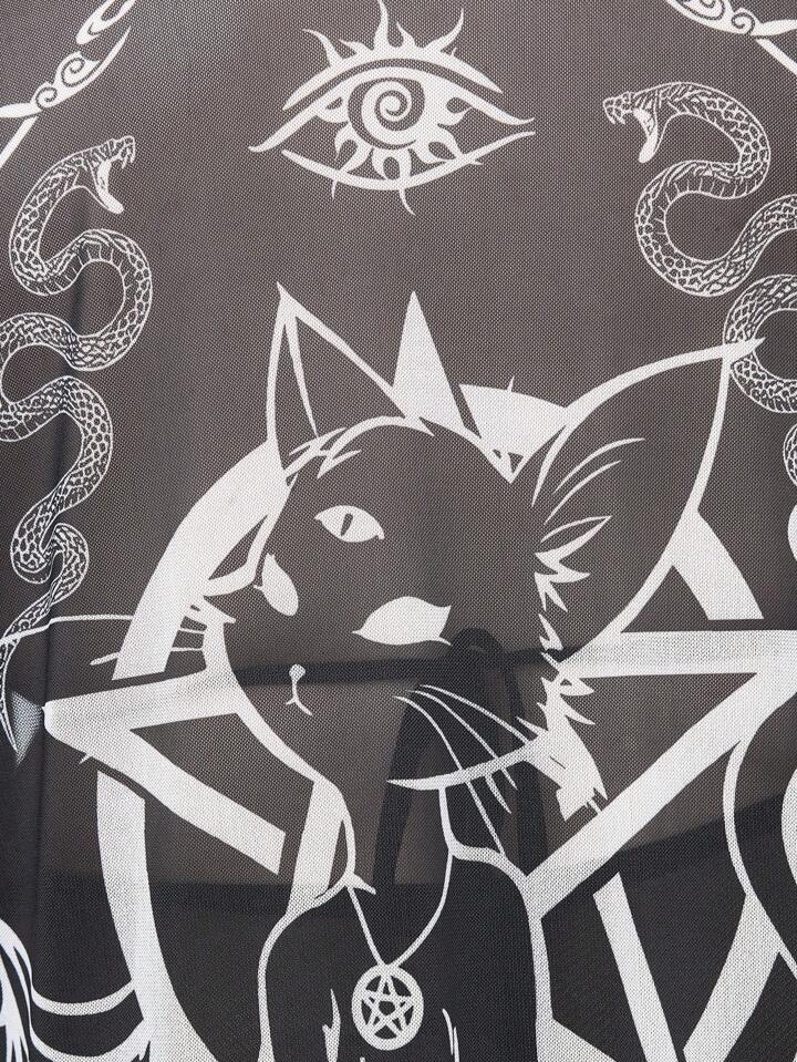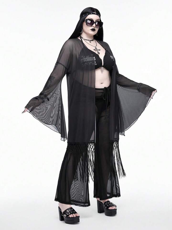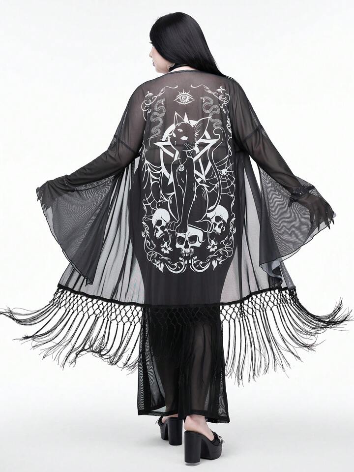 Couvre-plage transparent à franges avec tête de chat gothique, grande taille grande, convient pour les vacances d'été