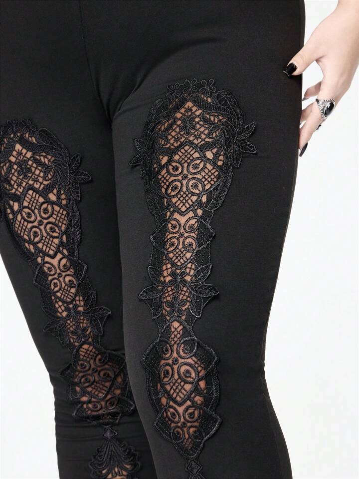 Leggings grande taille gothique à œillets ajourés avec broderie et nœud papillon au dos