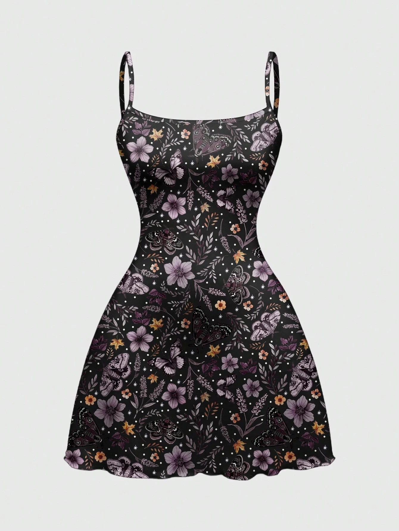 Robe camisole à imprimé tout-sur-tout gothique mystérieux floral, plante, soleil, lune, étoile, papillon, sexy, grande taille