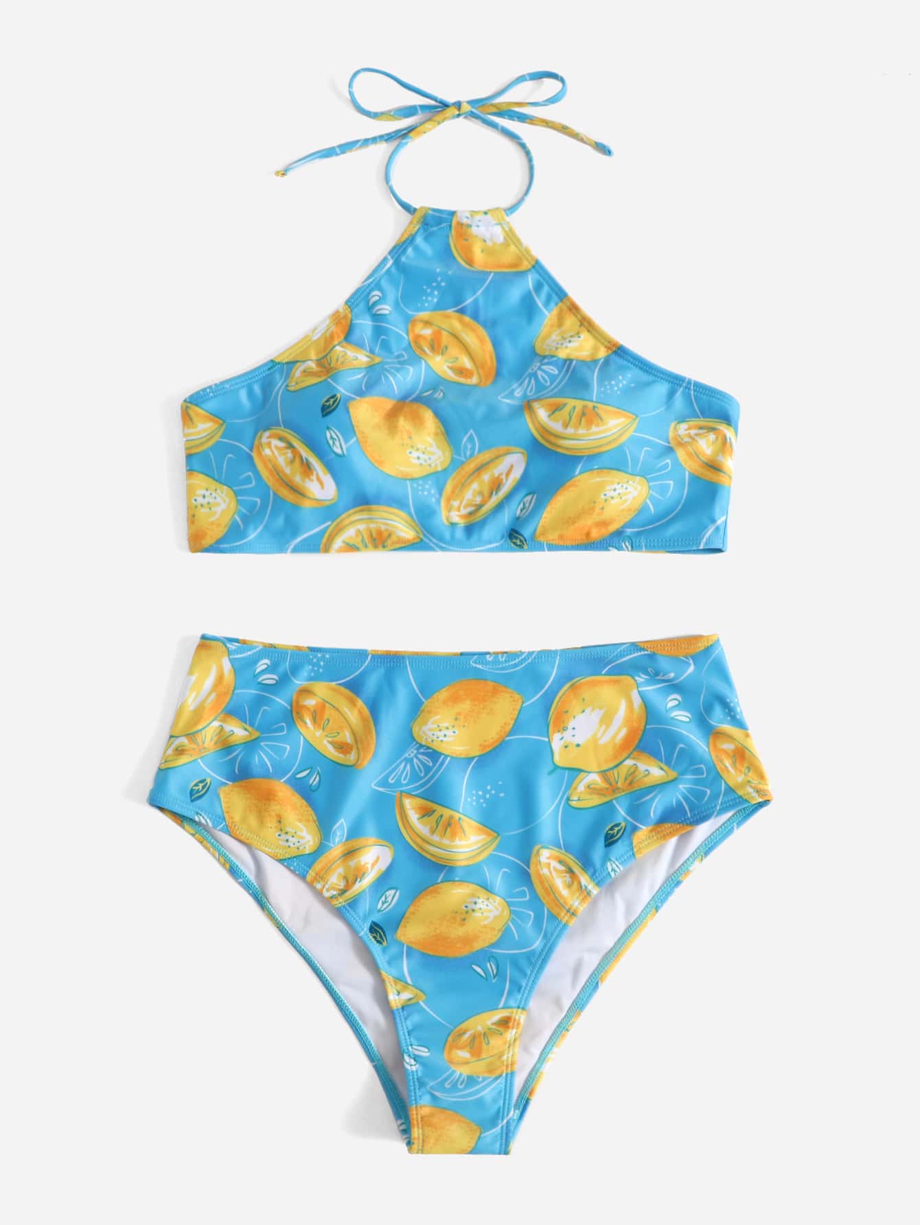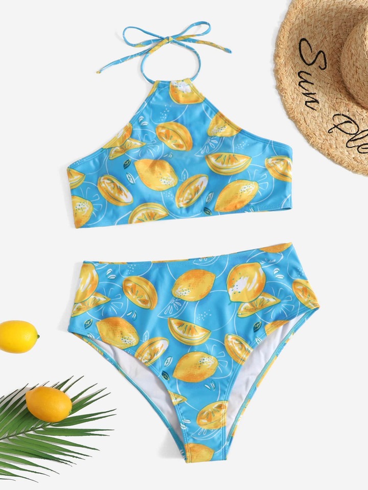 Ensemble bikini grande taille imprimé citron, taille haute pour l'été à la plage