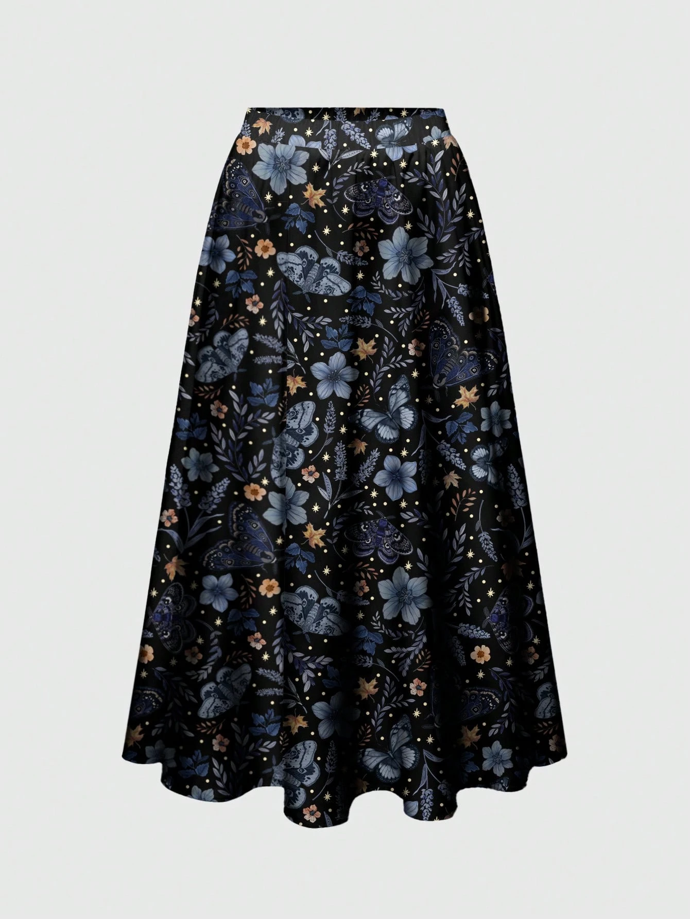 Jupe ample à imprimé floral, gothique, jardin mystérieux, papillon, soleil et lune, grande taille