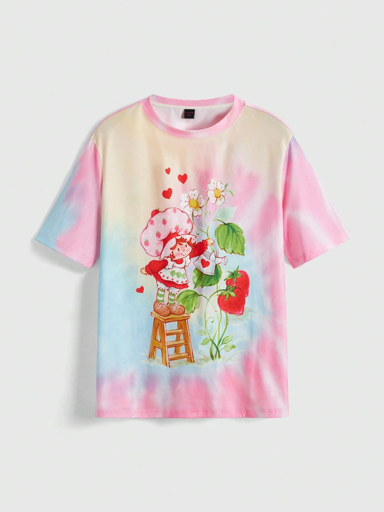 T-shirt à manches courtes avec graphique de dessin animé tie-dye, grande taille
