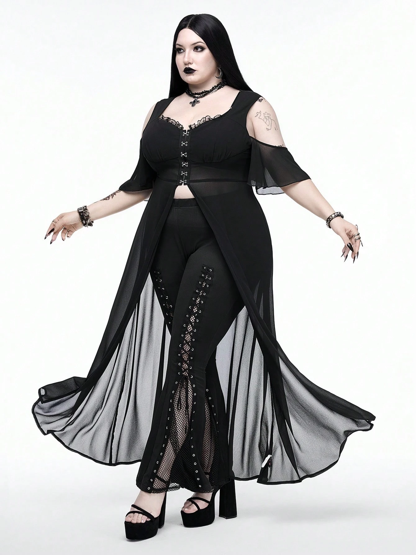 Cardigan de plage en chiffon, en patchwork de dentelle transparente, pour grande taille, style gothique, été