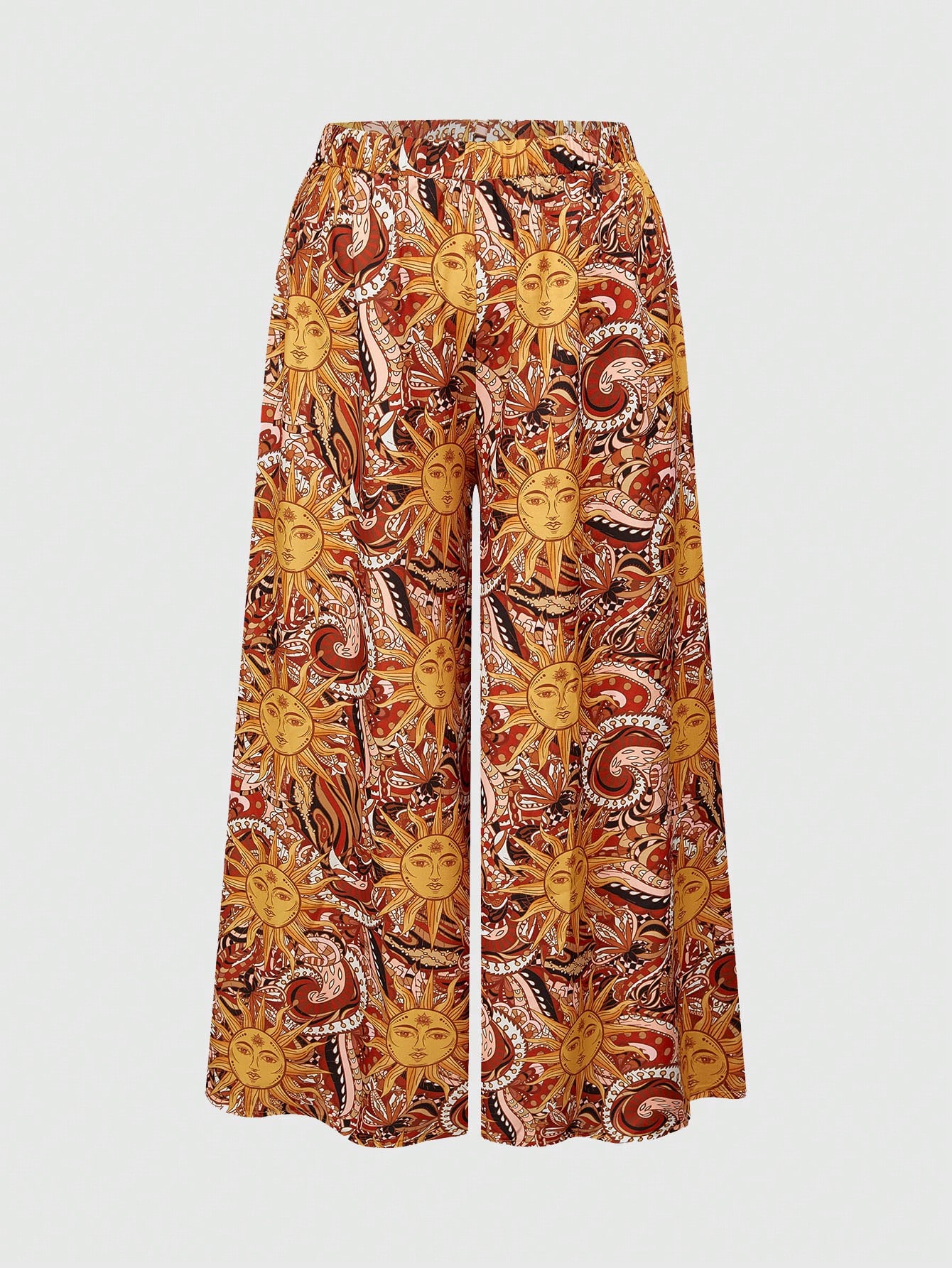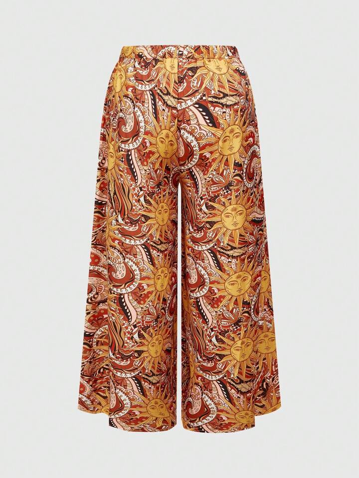 Pantalon droit à imprimé cachemire pour femmes grandes tailles, style rétro hippie de festival de musique de vacances