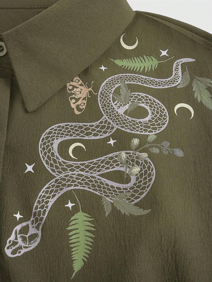 Goth Robe chemise casual d'été pour femmes grandes tailles avec motif peau de serpent, papillon, étoile et lune, manches chauve-souris