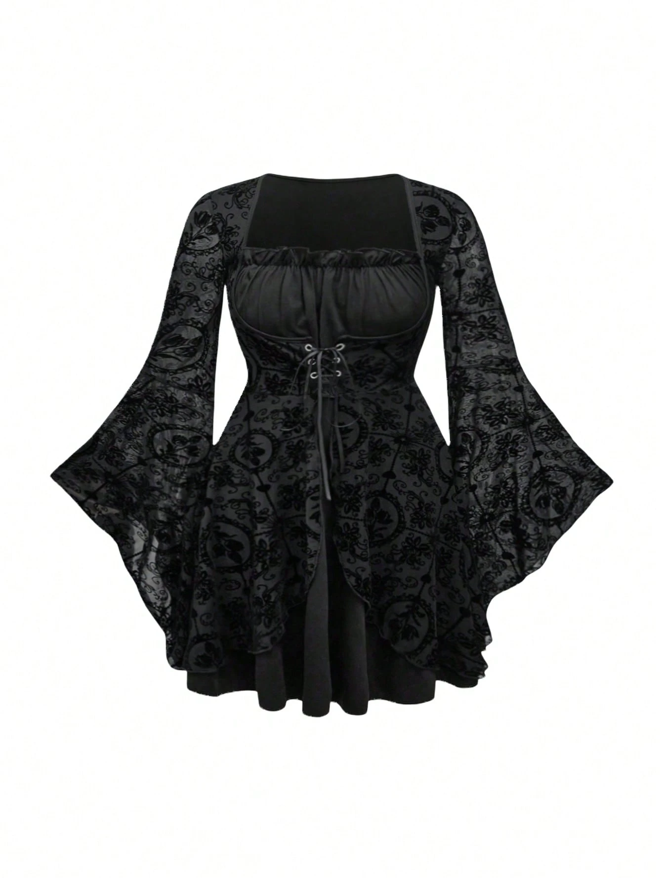 Robe midi femme grande taille style gothique vintage avec taille cintrée et double volant à l'ourlet