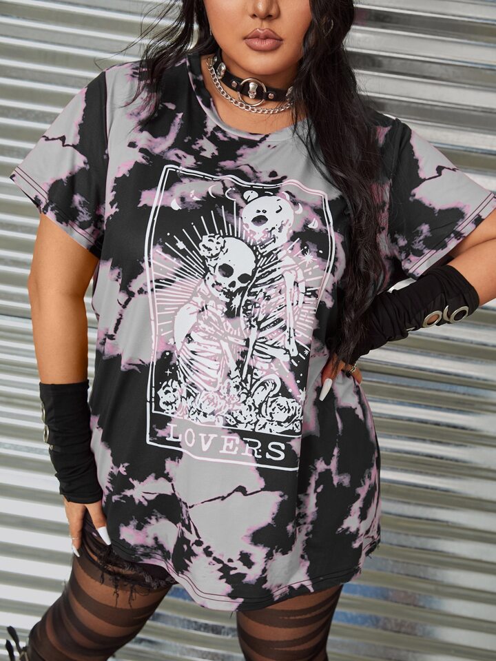T-shirt à motif squelette et lettres tie dye sans manchettes