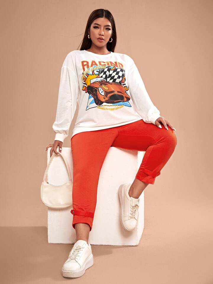 Sweat-shirt à imprimé voiture et slogan