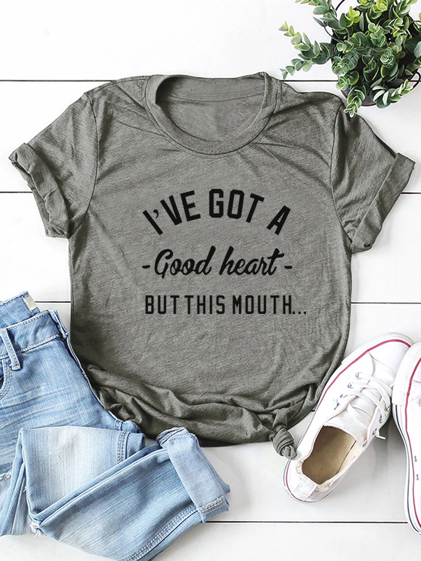 T-shirt à slogan avec col rond