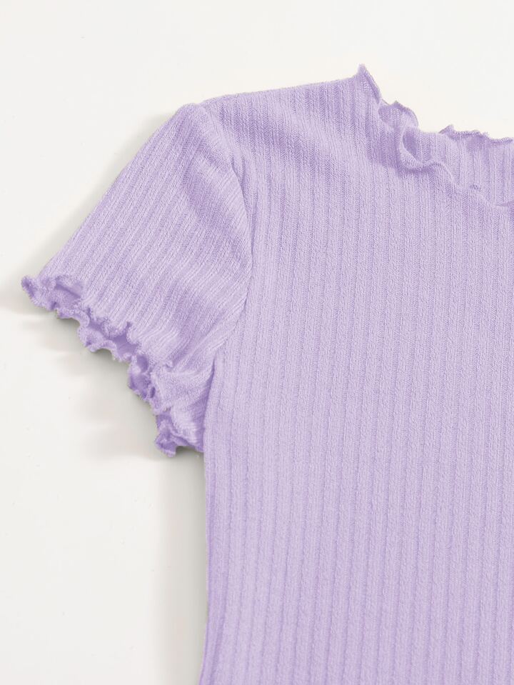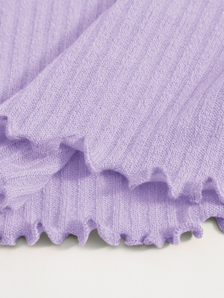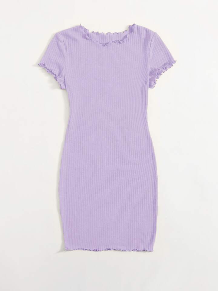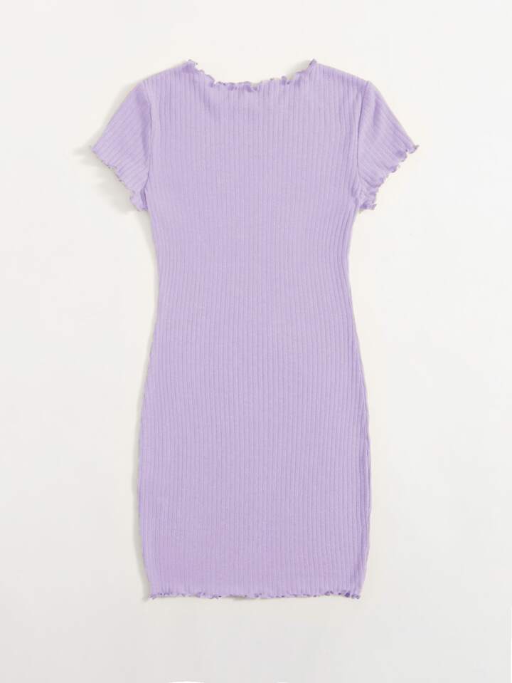 Robe moulante côtelée unicolore à ourlet ondulé