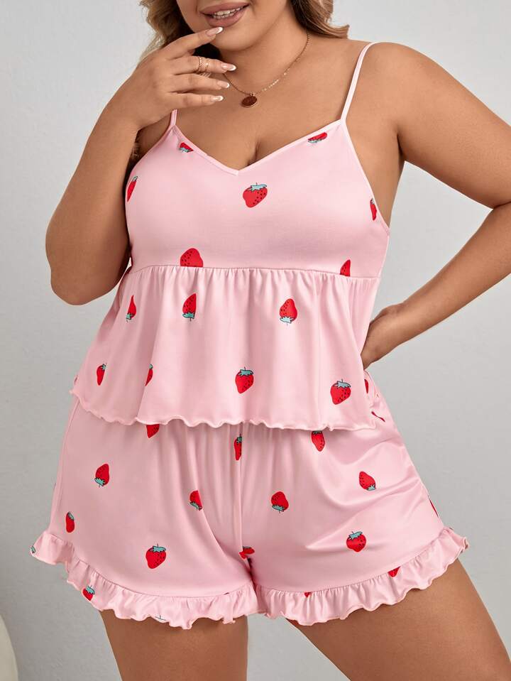 Ensemble de pyjama à imprimé fraise à ourlet ondulé