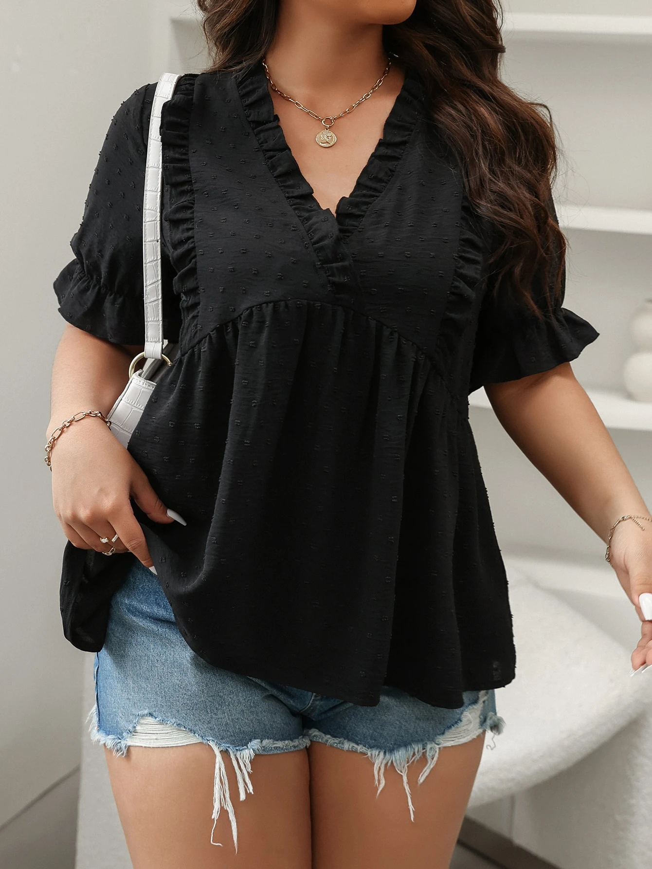 Blouse péplum à plis manches évasées