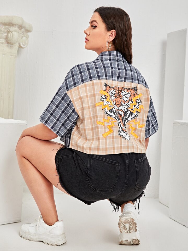 Chemisier à carreaux avec imprimé tigre