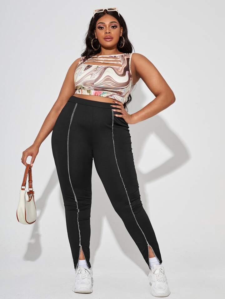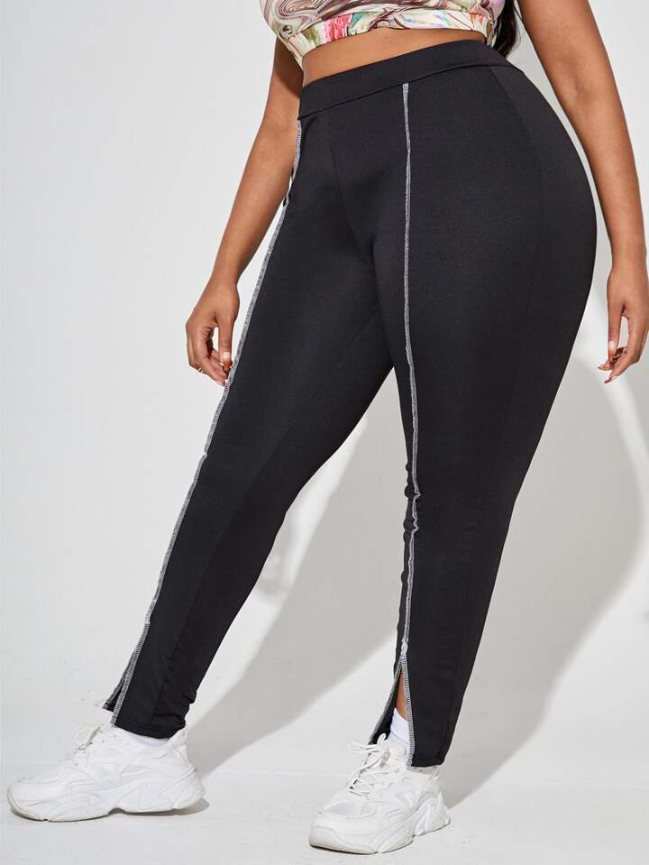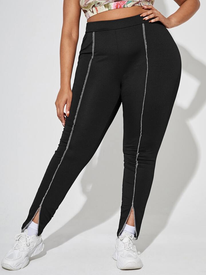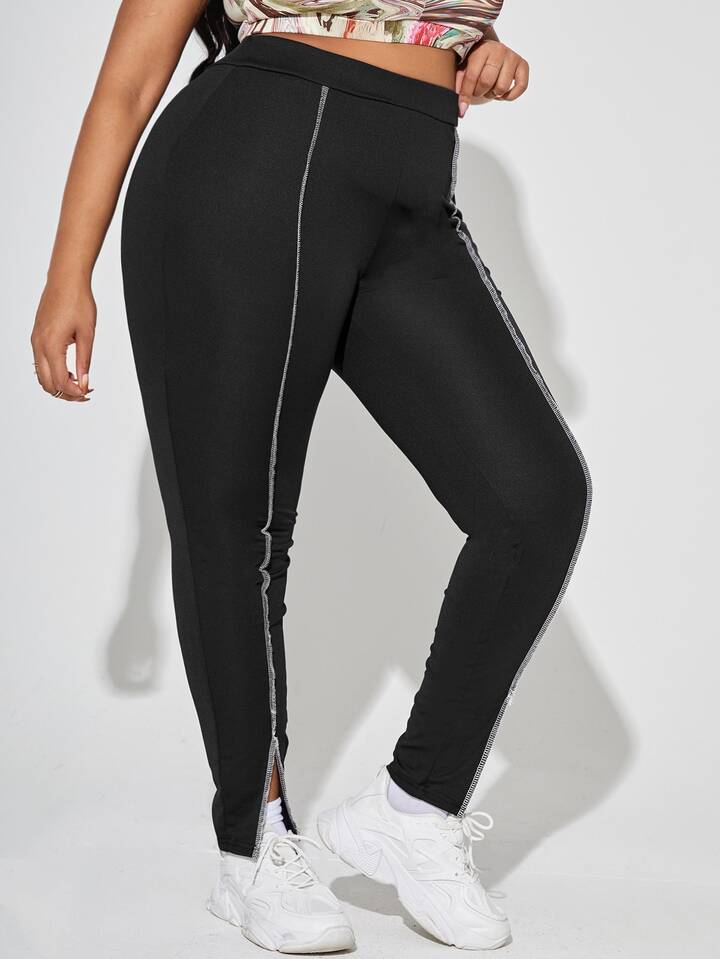Pantalon moulant à surpiqûres fendu