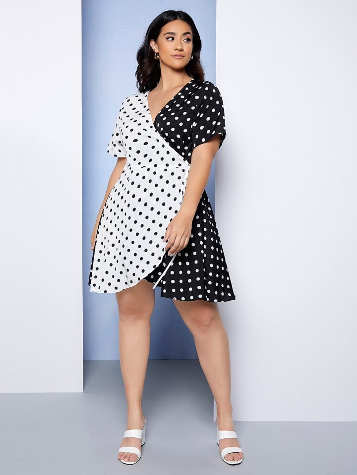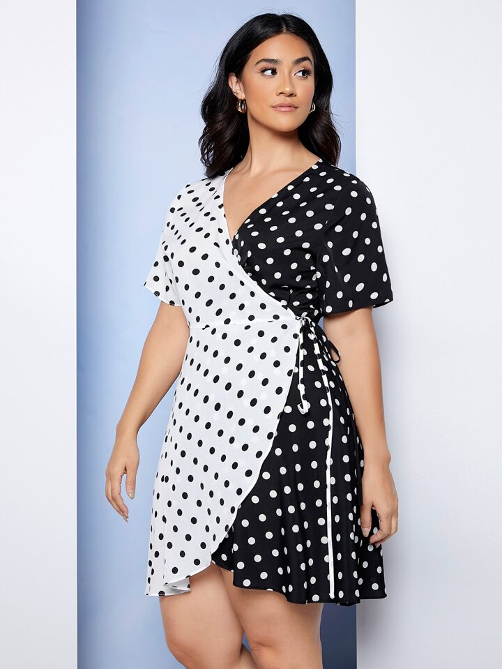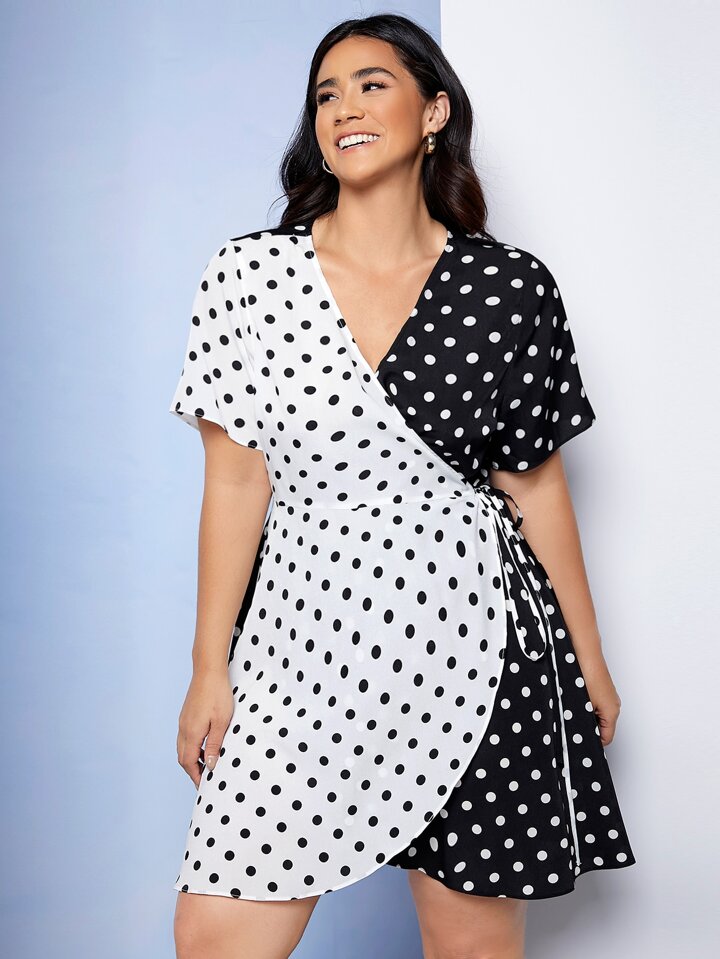 Robe croisé à pois avec nœud