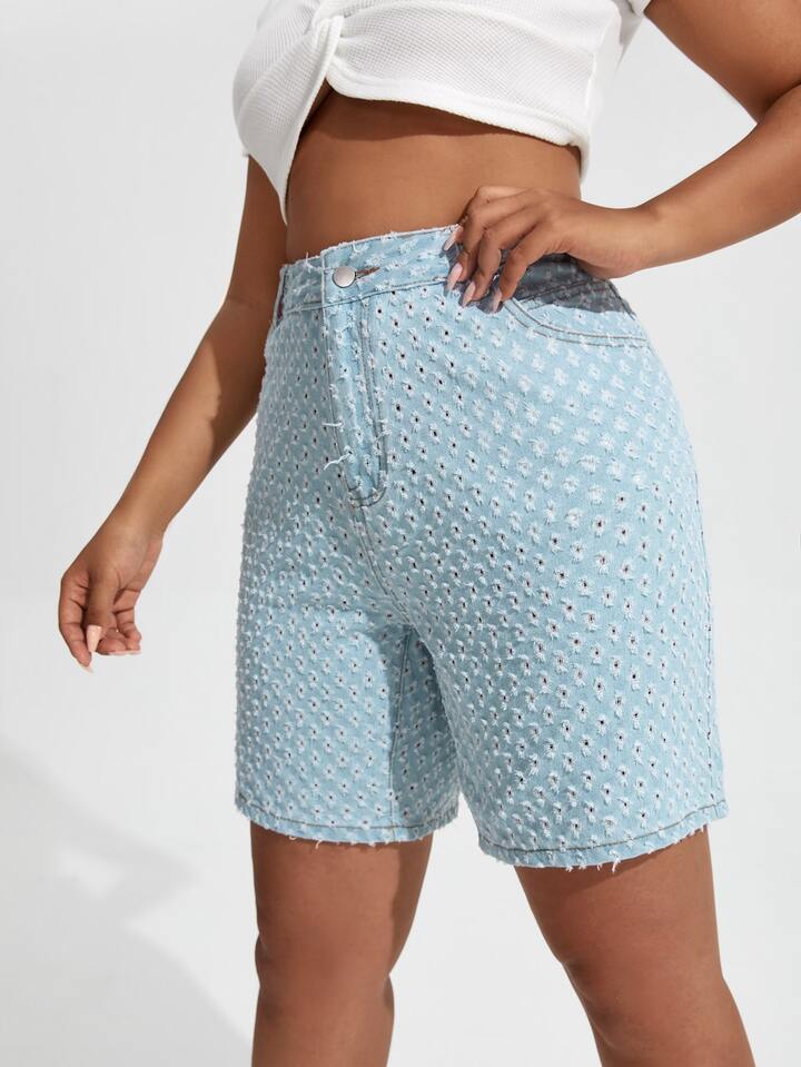 Shorts en denim déchirés à fermeture à glissière et taille haute, style Mom