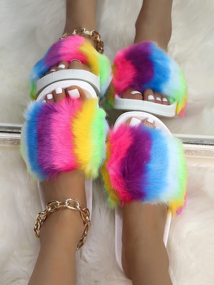 Claquettes avec fourrure synthétique et blocs de couleur