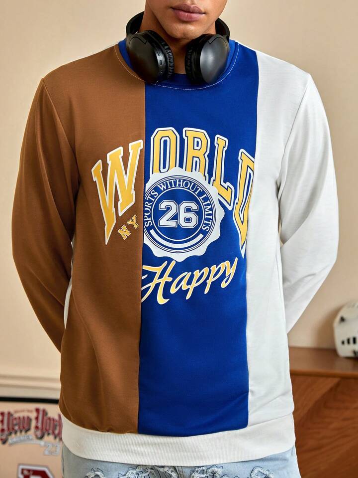 Prep Homme Sweat-shirt À Lettres À Blocs De Couleurs