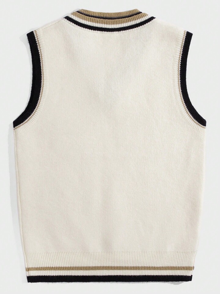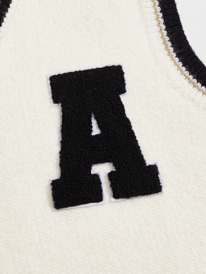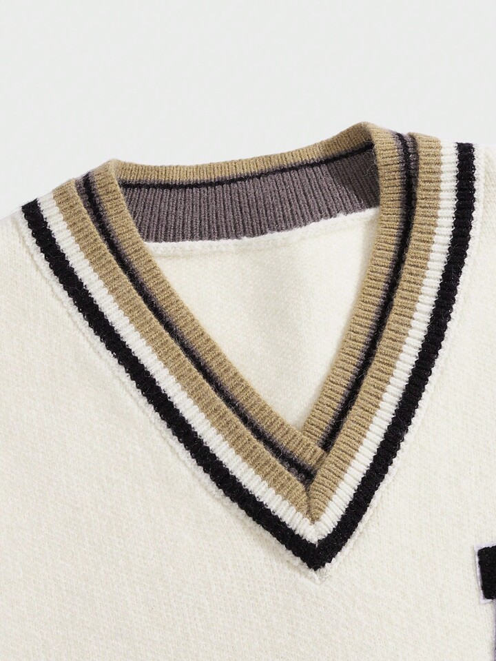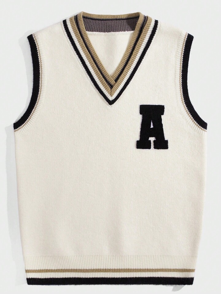 Prep Homme Pull Sans Manches À Applique Lettre À Ourlet À Rayures