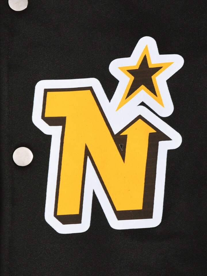 Prep Homme Veste Universitaire Étoile & À Lettres À Ourlet À Rayures