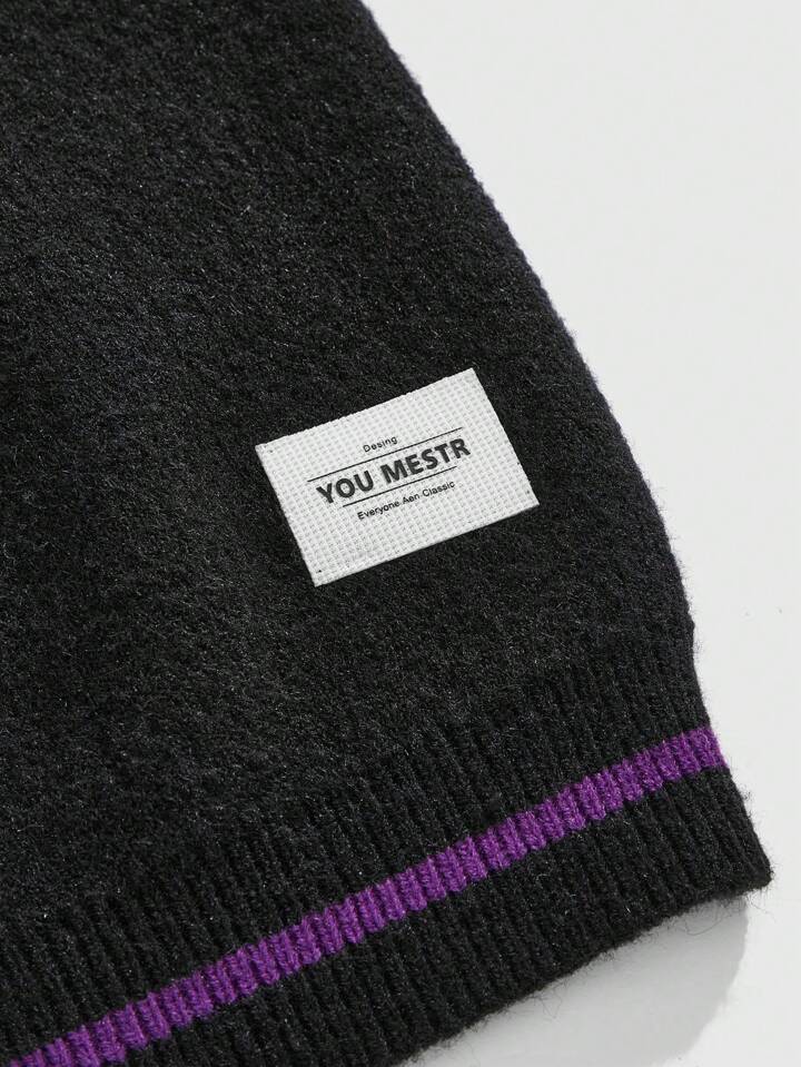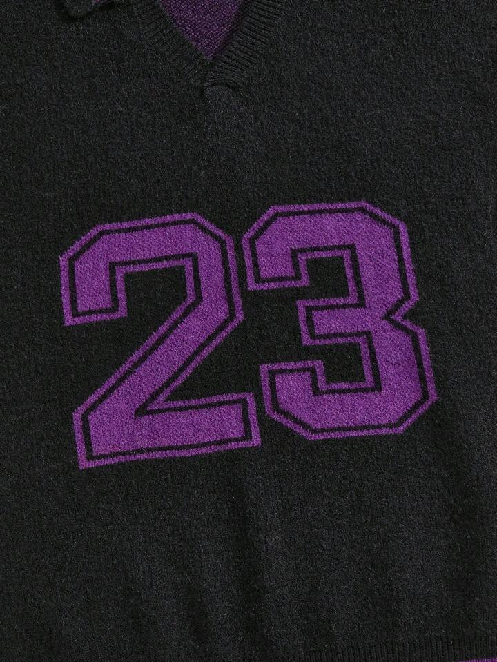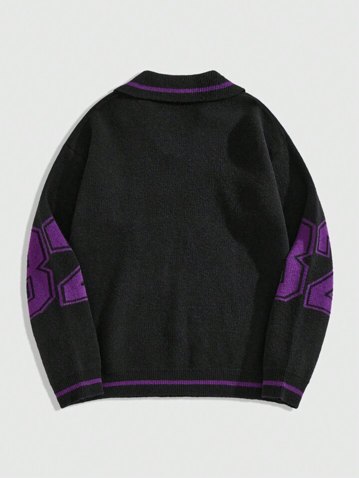 Prep Pull casual à manches longues avec imprimé numéro de maillot et col pour hommes