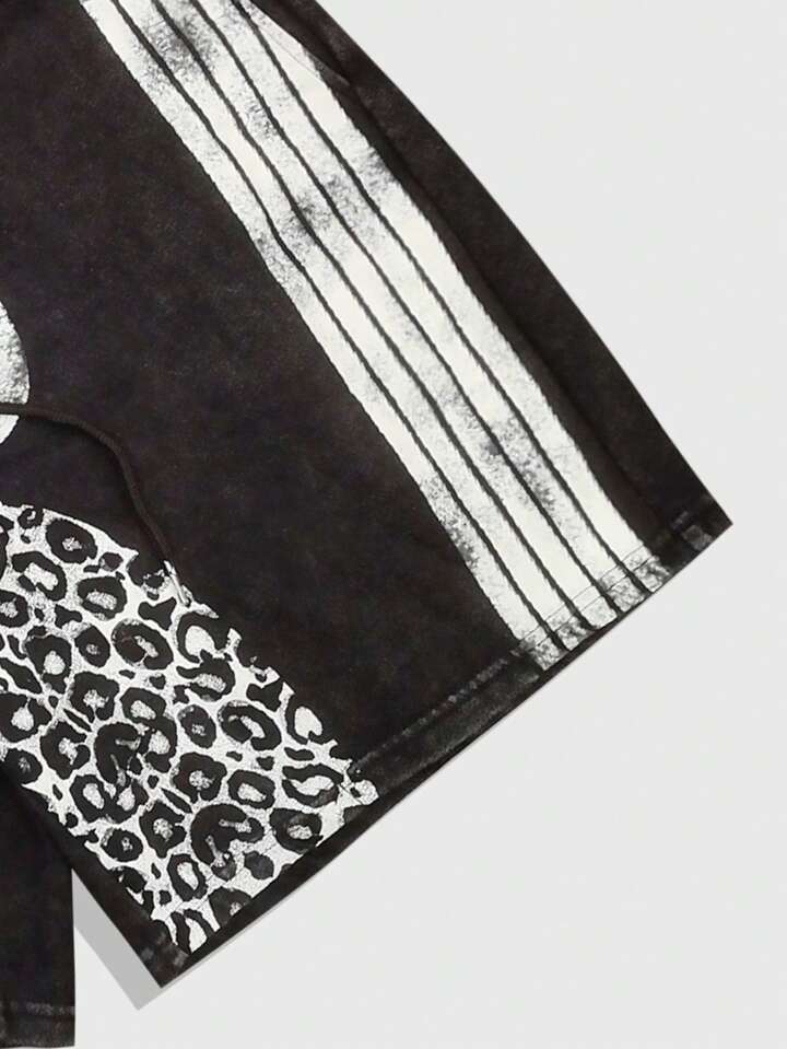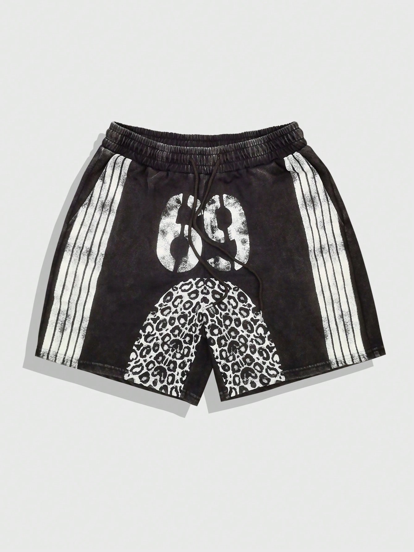 Prep Hommes Shorts à taille élastique avec imprimé rayures et léopard