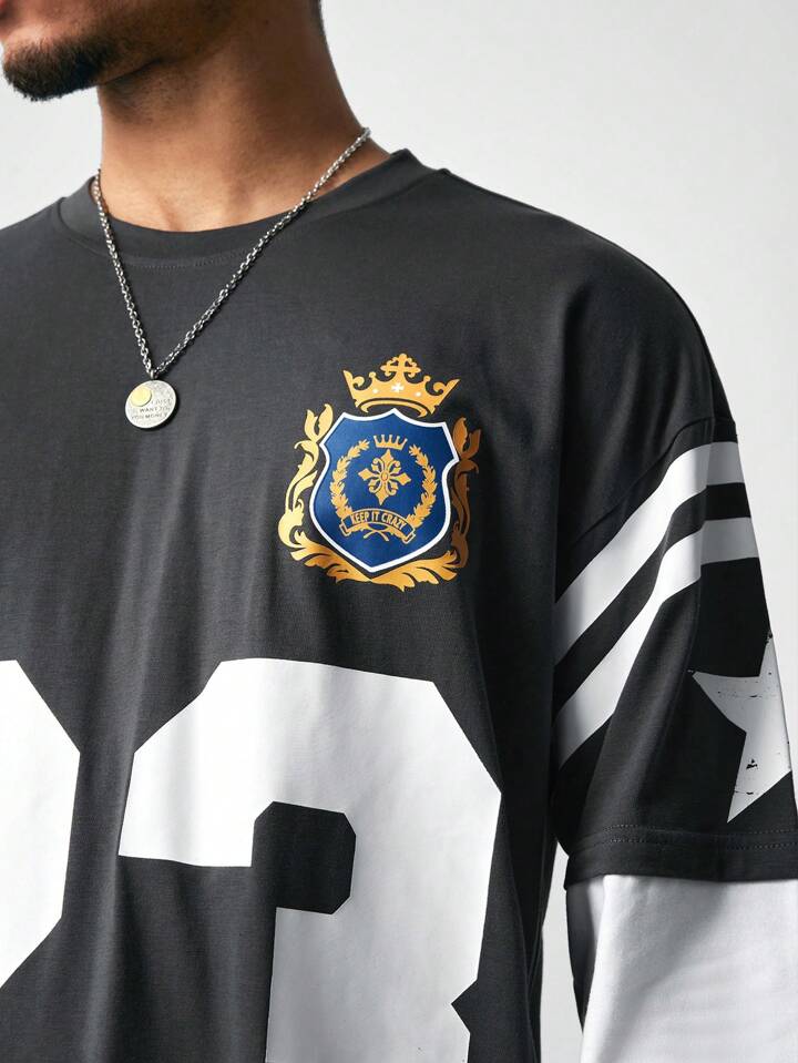 Prep Top décontracté simple pour homme à col rond, manches longues, patchwork de couleur unie avec impression de chiffre