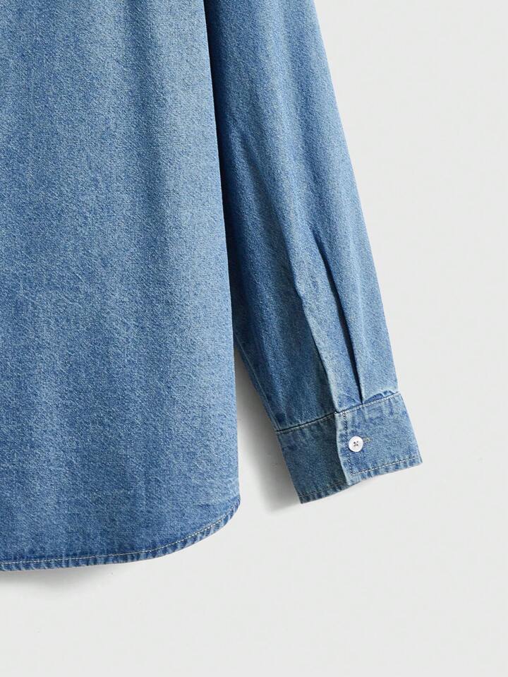 Prep Chemise En Jean Pour Homme À Épaules Tombantes Et À Boutons, Convient Pour Un Usage Quotidien Au Printemps, En Automne Et En Hiver