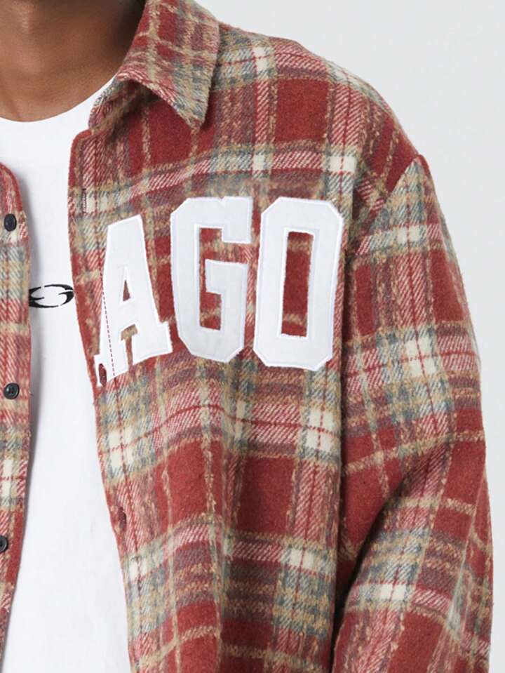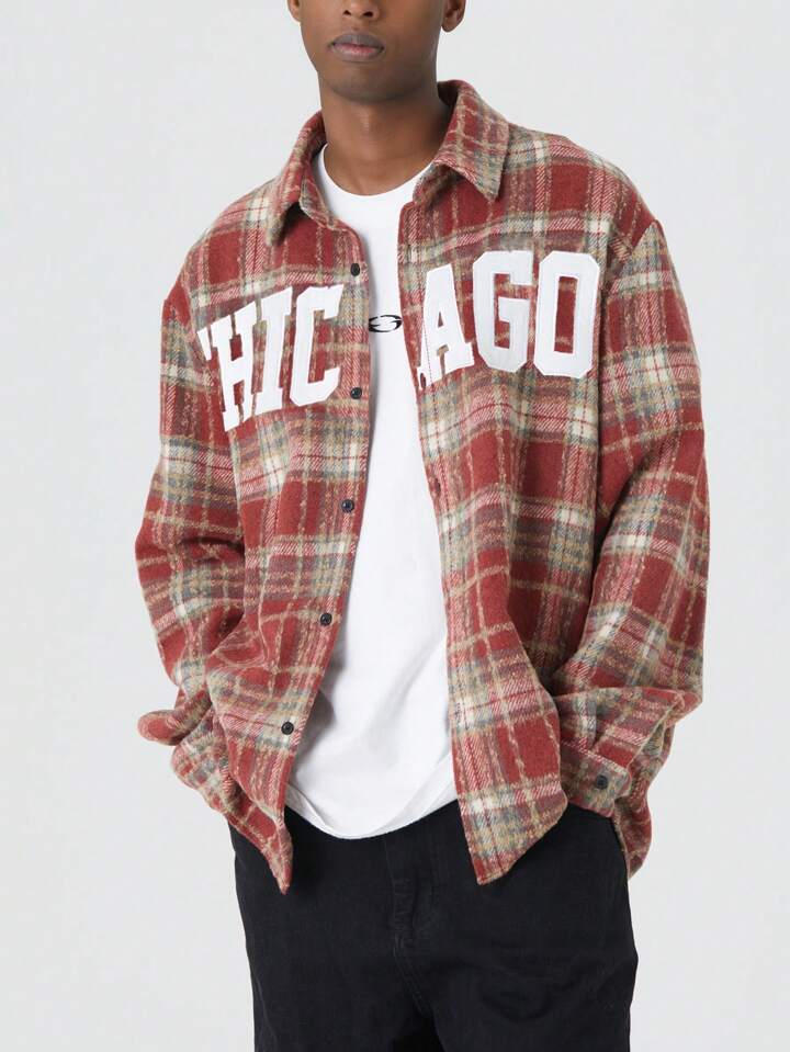 Prep Veste décontractée à manches longues avec boutons et imprimé lettres pour homme