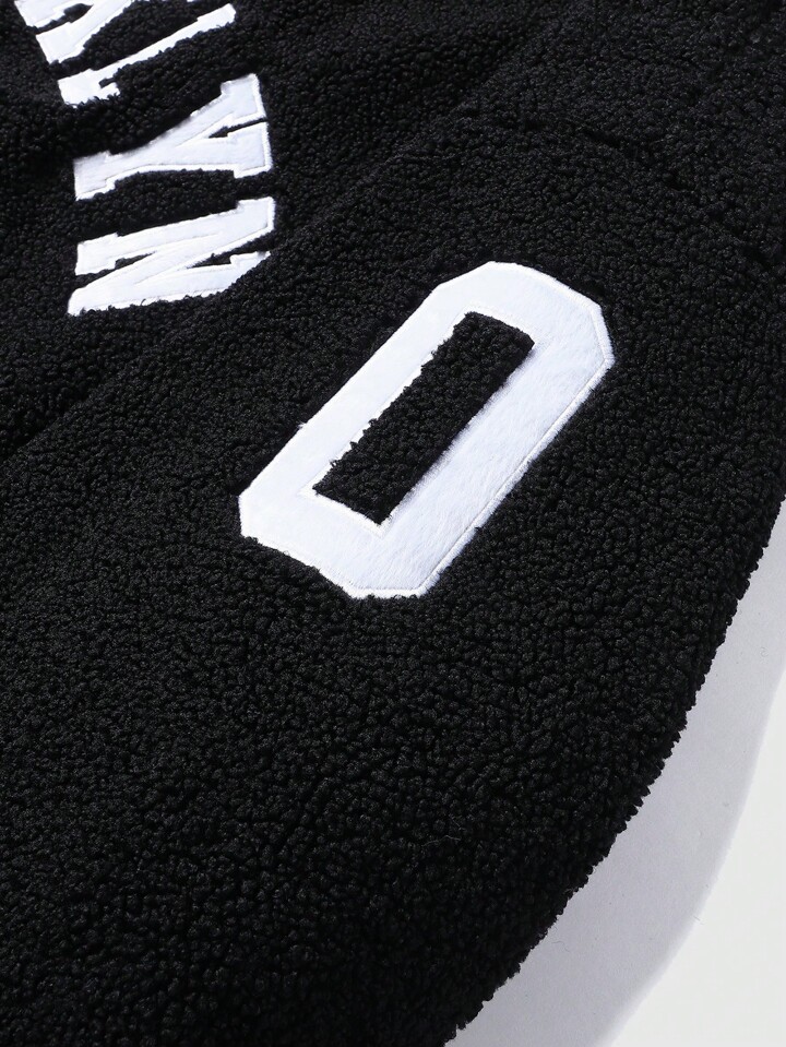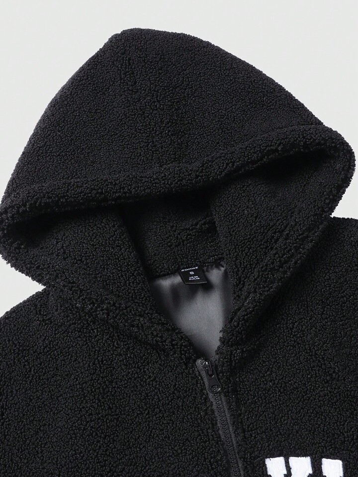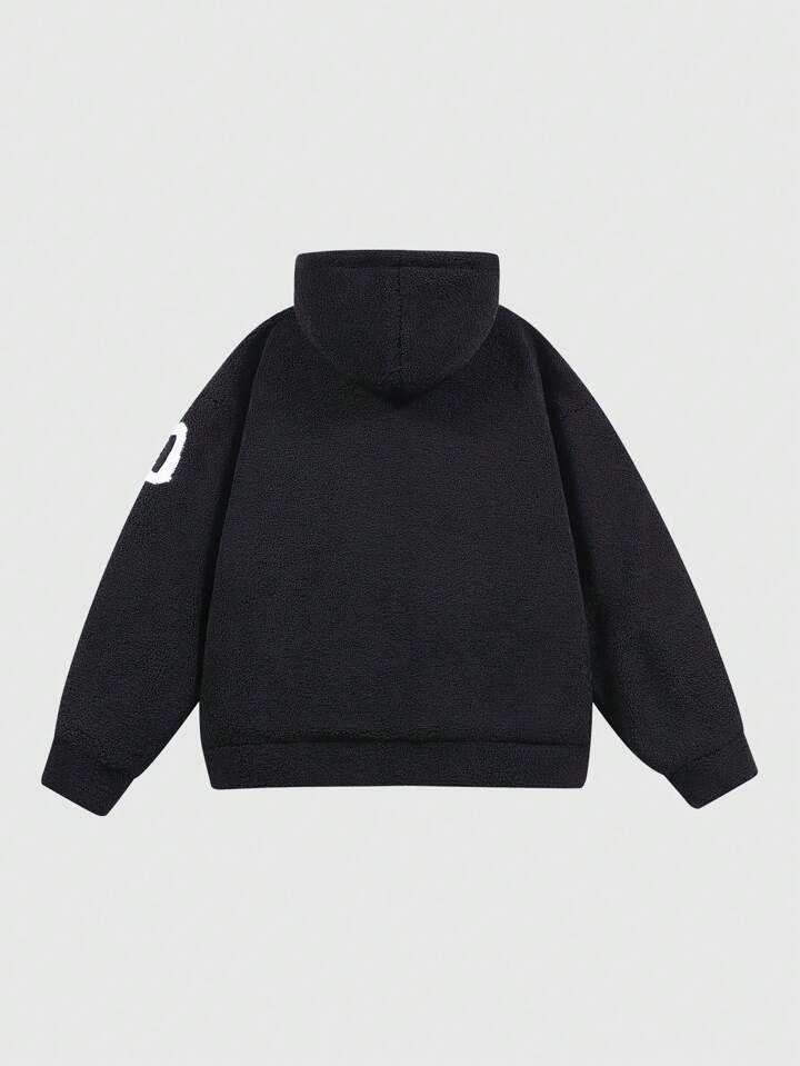 Prep Veste à capuche en peluche de laine polaire à lettres brodées décontractée pour homme, convient pour l'automne et l'hiver