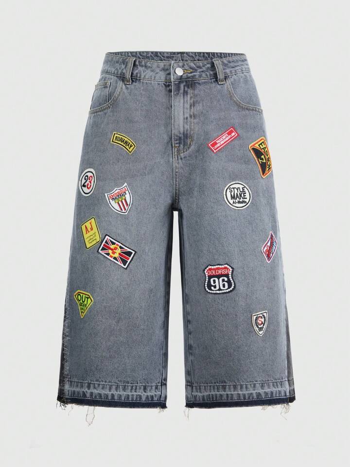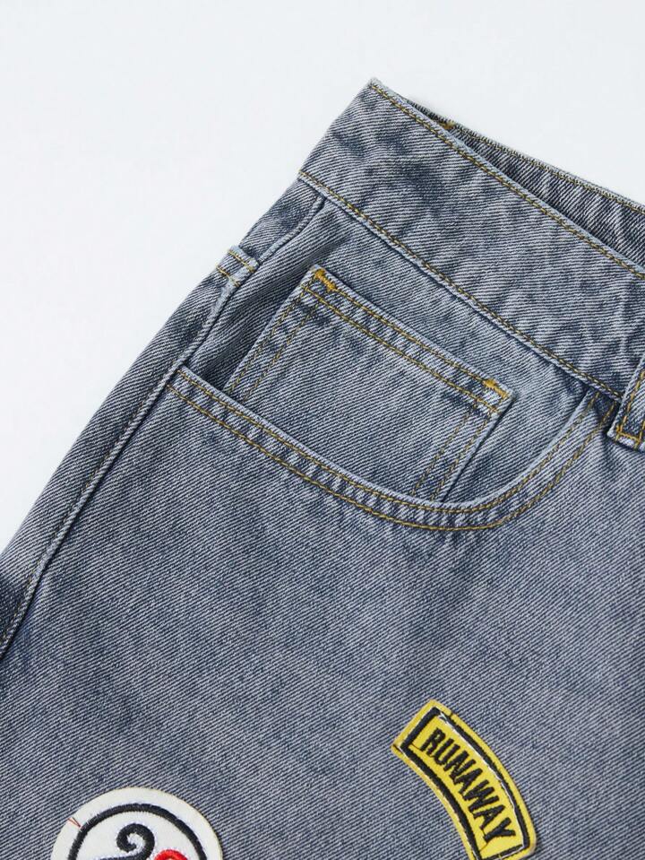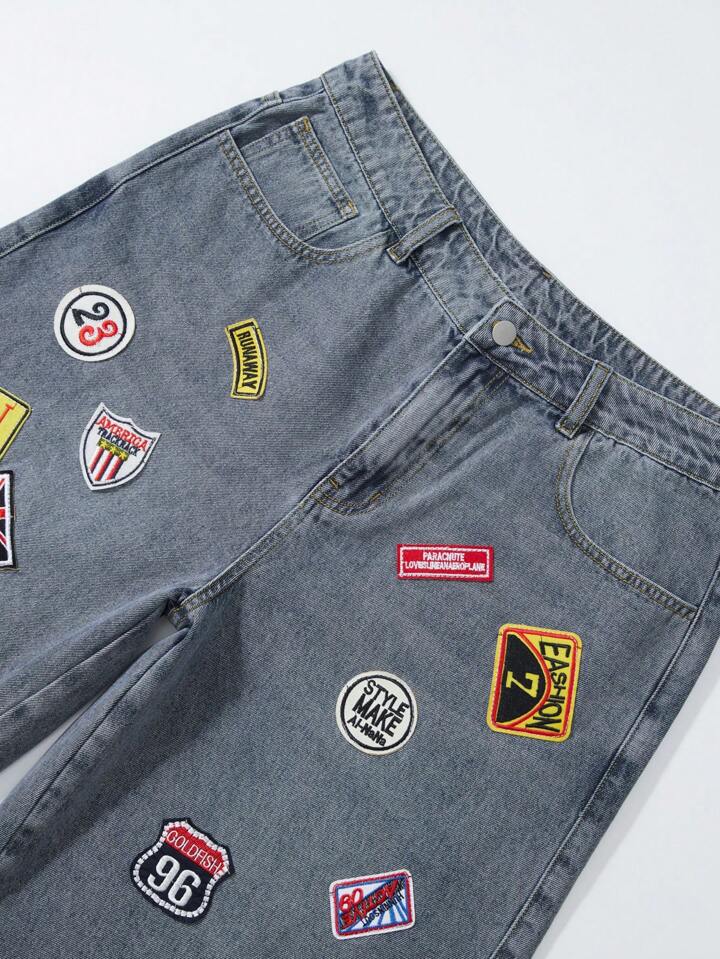 Prep Jeans décontractés polyvalents pour hommes avec poches appliquées et fente avant