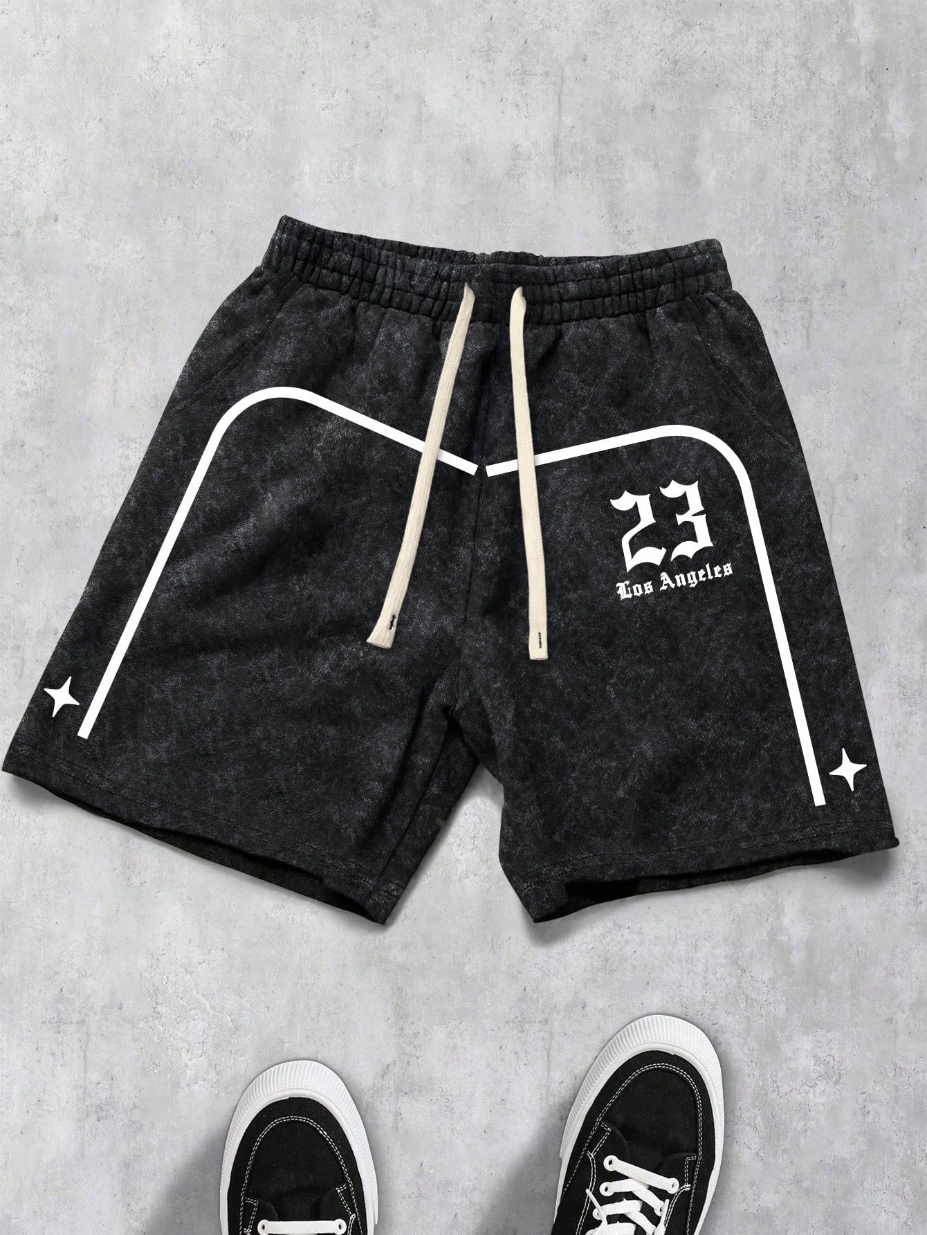 Prep Shorts pour hommes avec taille à cordon, poche et imprimé lettres avec bordure contrastée