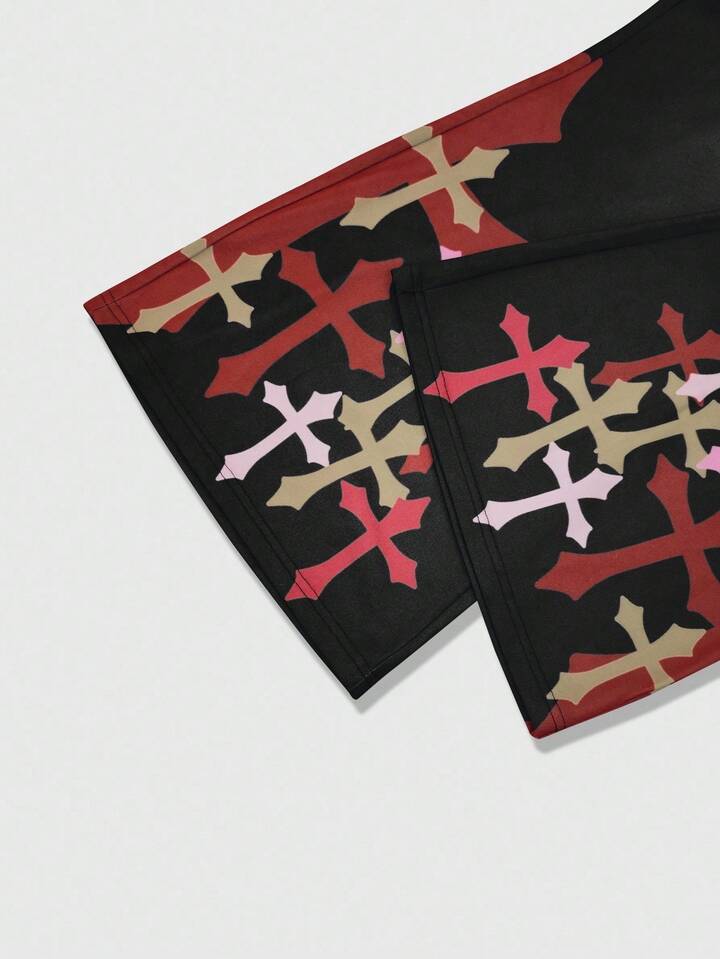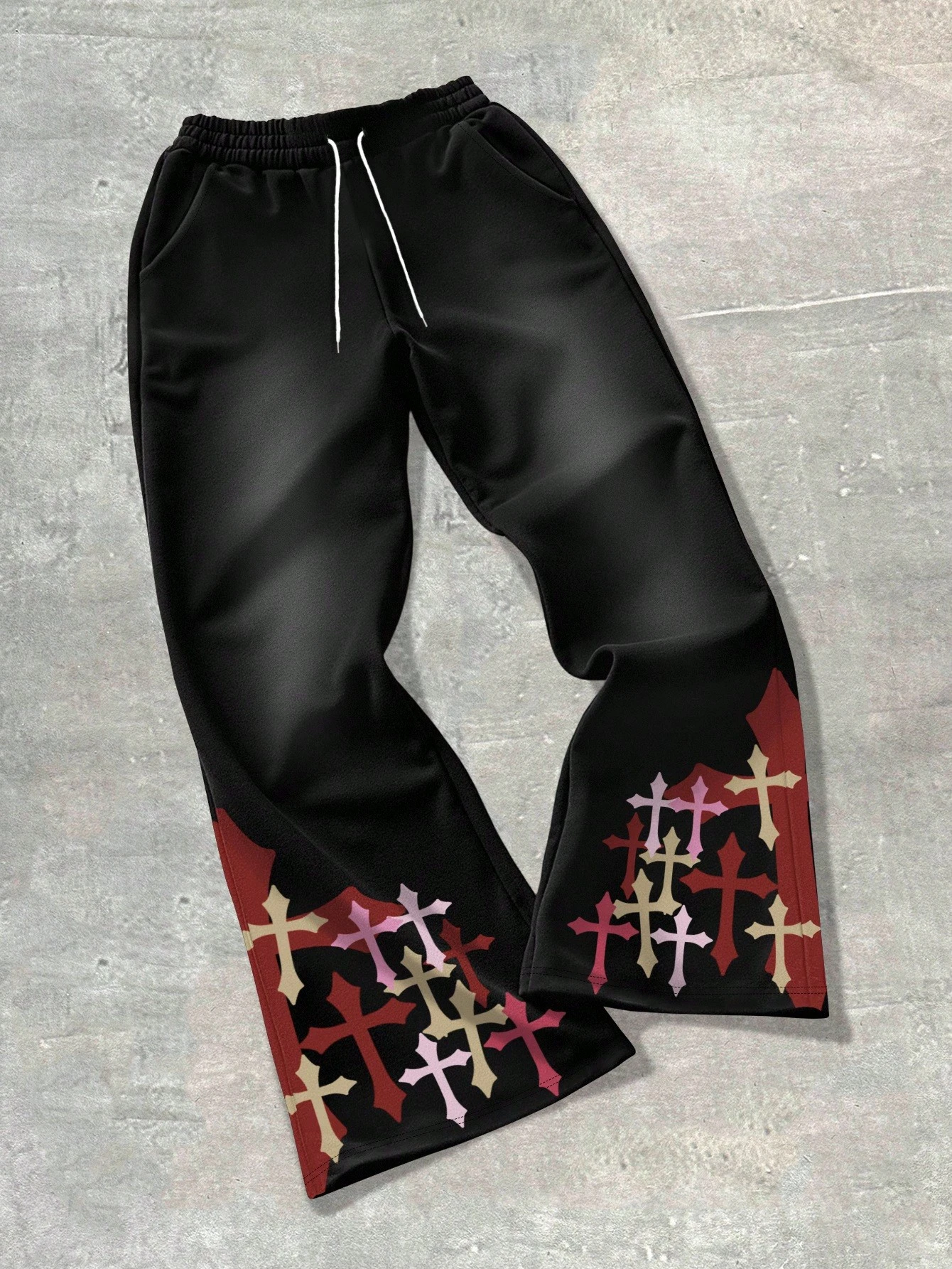 Prep Pantalon de survêtement ample décontracté avec taille à cordon de serrage et imprimé croix pour hommes