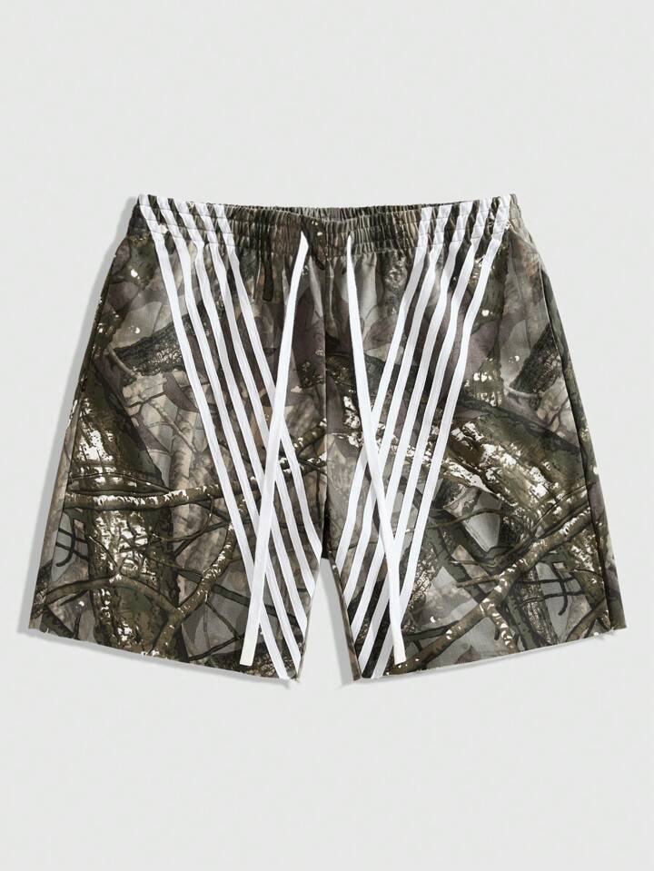 Prep Short décontracté pour homme à motif camouflage d'arbre sec et rayures, style de rue rétro
