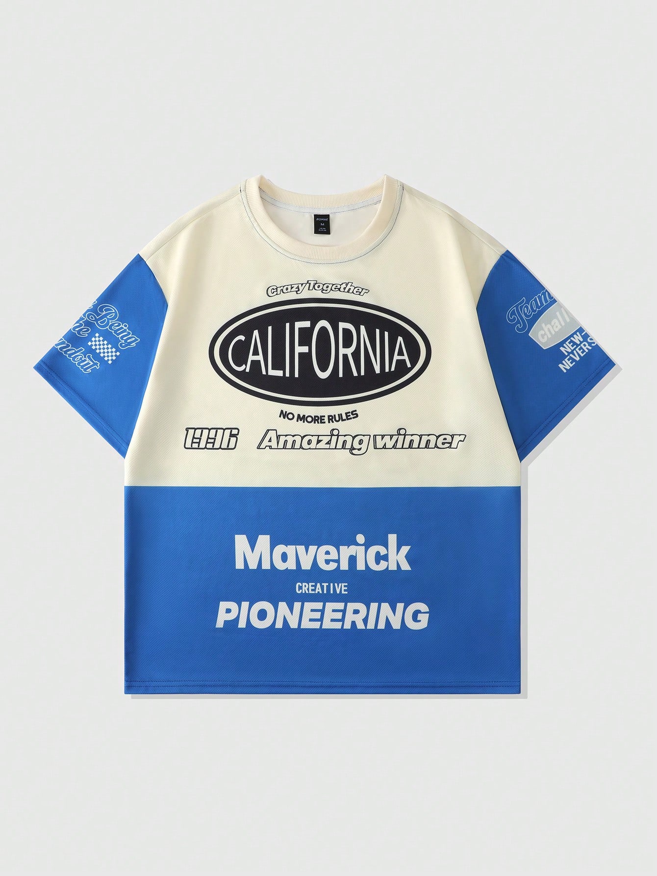 Prep T-shirt casual polyvalent à manches courtes avec imprimé lettre, col rond, pour homme, été