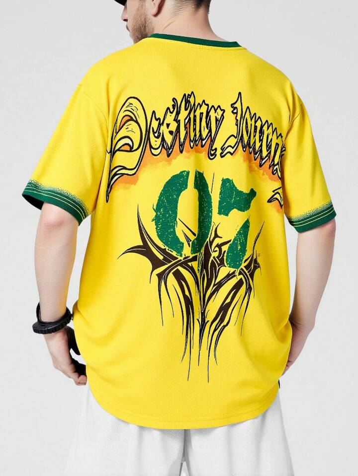 Prep T-shirt à manches courtes col rond avec imprimé lettres pour hommes, convient pour le port quotidien au printemps et en été