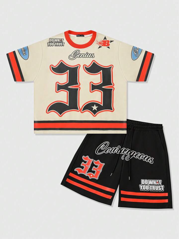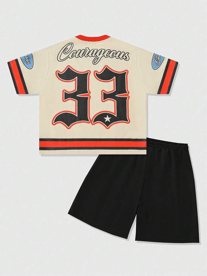 Prep Ensemble de t-shirts graphiques amples et courts pour hommes, style de rue rétro
