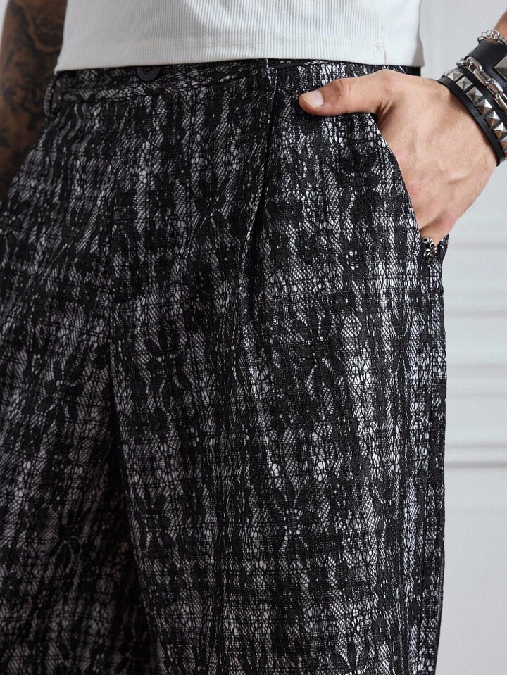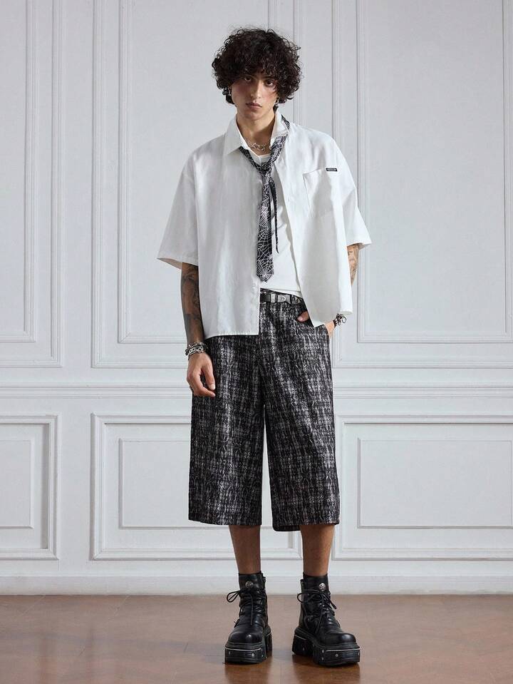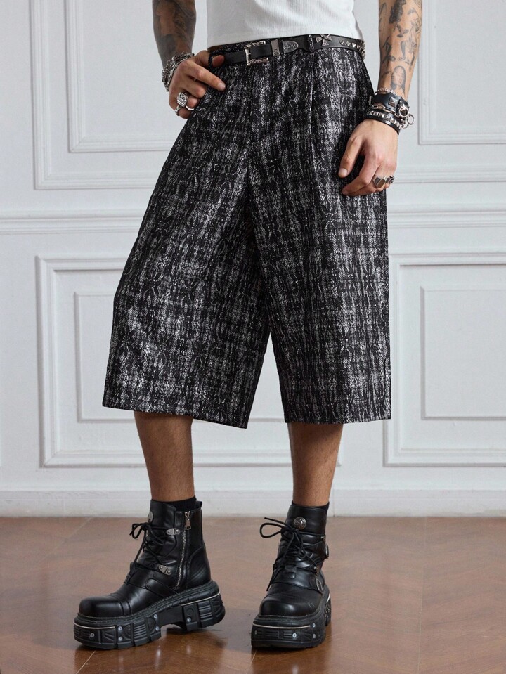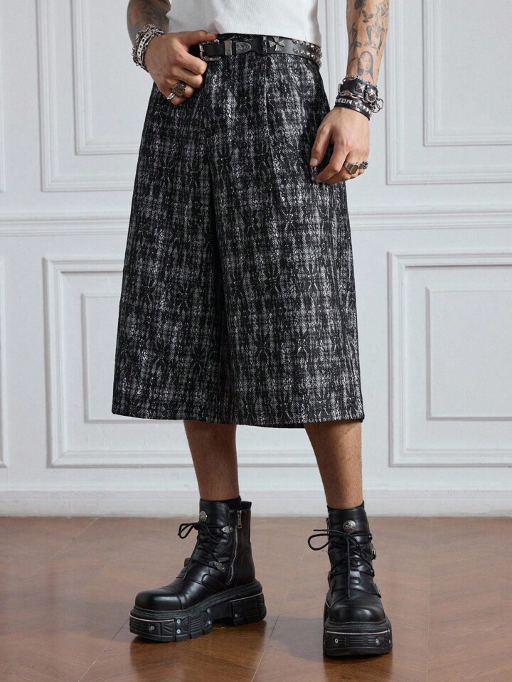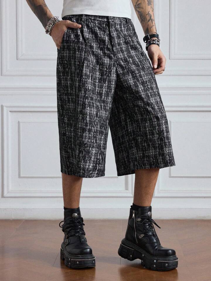 Prep Pantalon capri casual à motif de tartan et de dentelle pour hommes