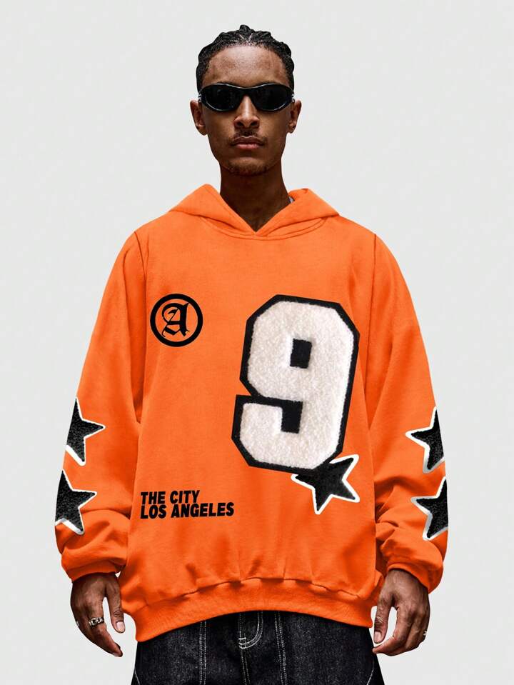 Prep Sweat-shirt à capuche à manches longues avec imprimé lettres et pentagramme pour homme