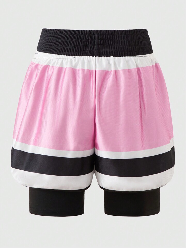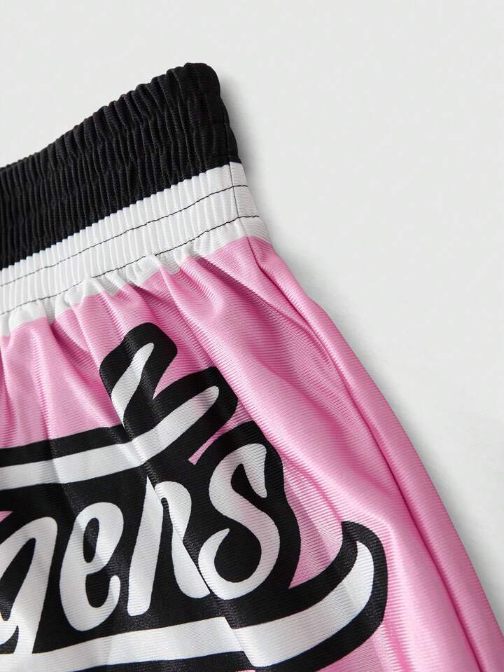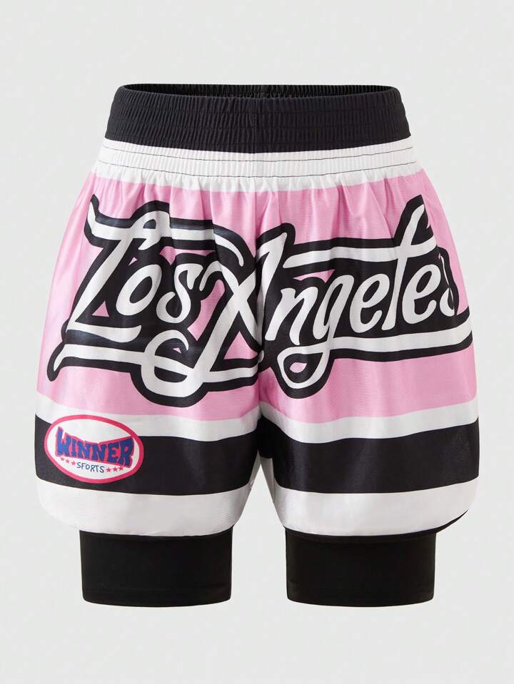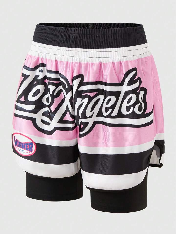 Prep Short de basketball à taille élastique avec double couche et imprimé lettre pour hommes