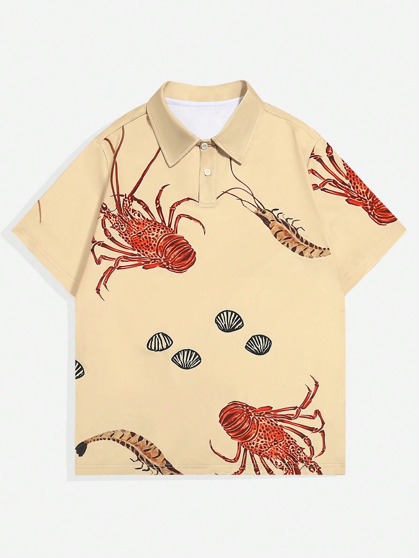Prep Chemise polo à manches courtes décontractée avec imprimé homard, pour l'été