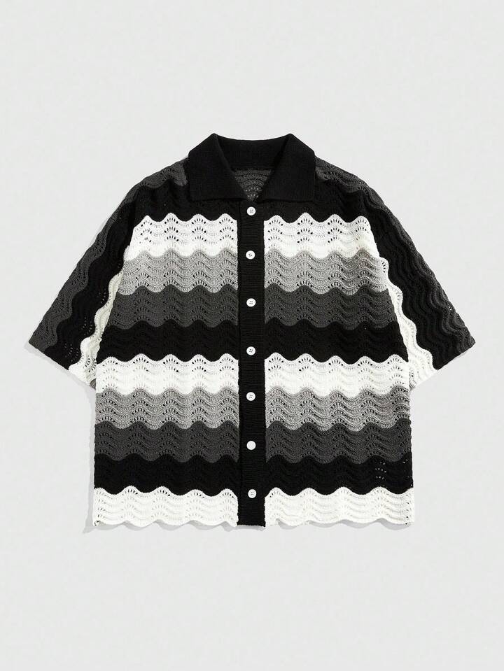 Prep Chemise tricotée ample pour hommes, Top à manches courtes tricoté