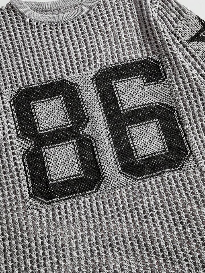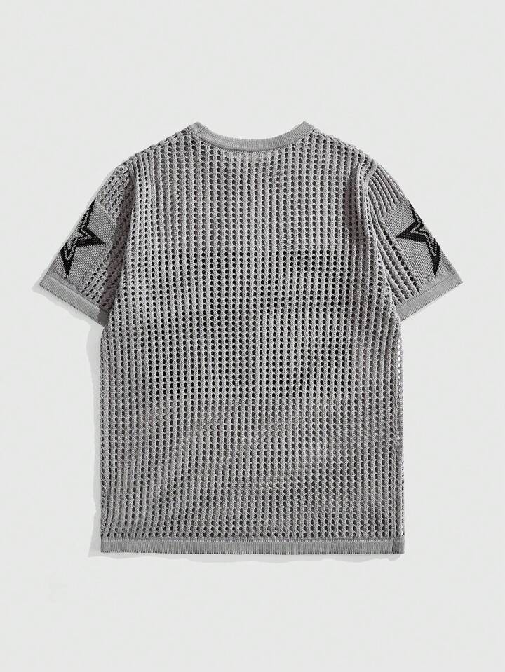 Prep Pull décontracté à col rond et à manches courtes pour hommes, motif jacquard creux