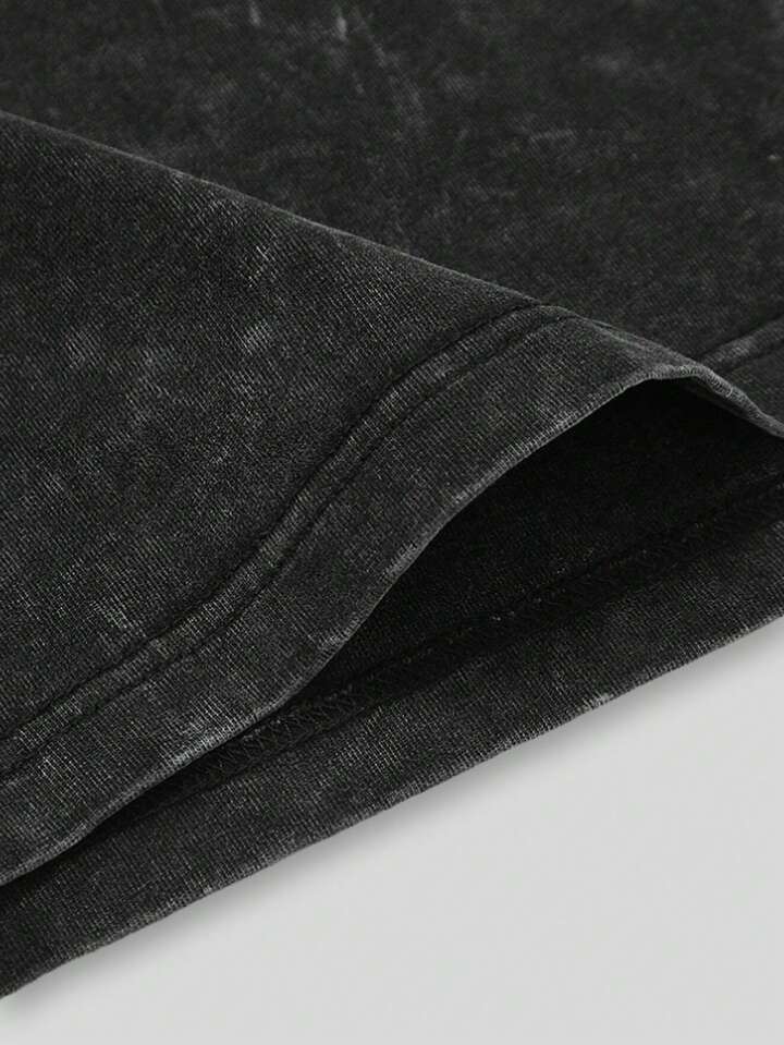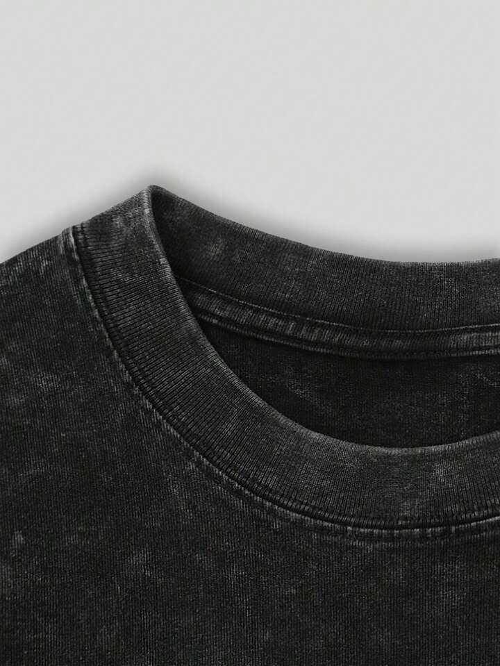 Prep T-shirt à manches courtes pour hommes imprimé avec un lavage acide, un slogan de basket-ball, convenant pour le port quotidien au printemps et en été